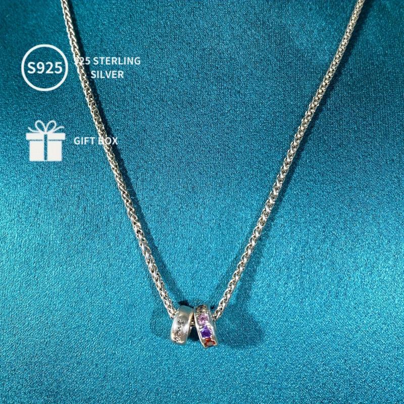 Elegant letter double circle necklace made of S925 silver, perfect for birthday or anniversary gift.