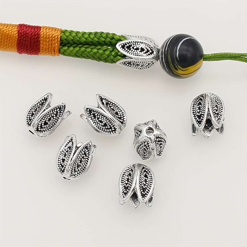 Add a touch of ethnic style to your DIY projects with these antique-style tulip flower beads. Perfect for hats, tassels, necklaces, and more.