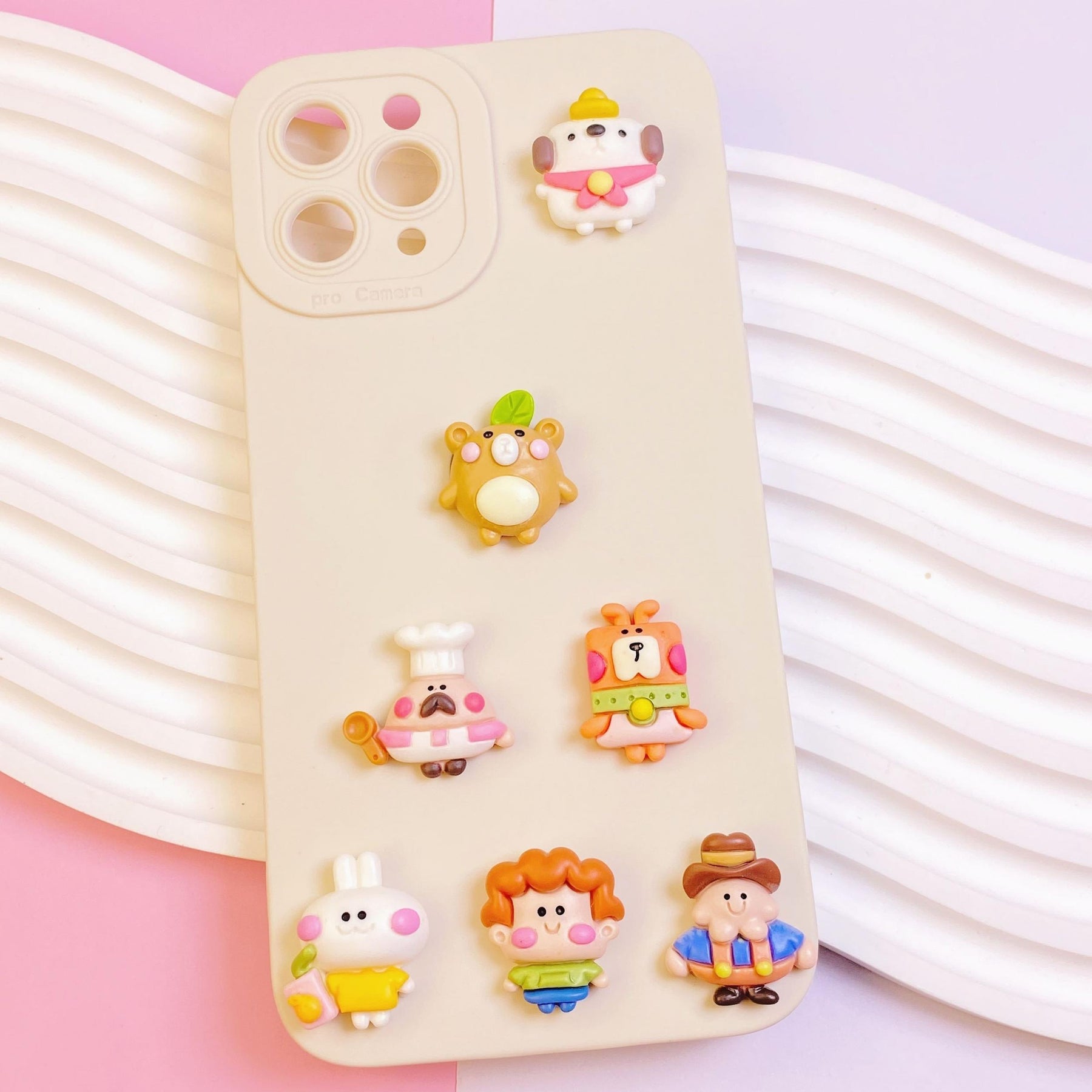 Enhance your DIY projects with this set of 7 colorful and cute cartoon character resin charms. Perfect for hair clips, phone cases, photo frames, wall decorations, and scrapbooking.