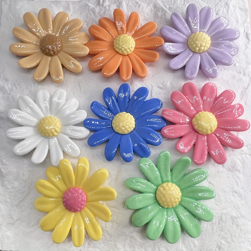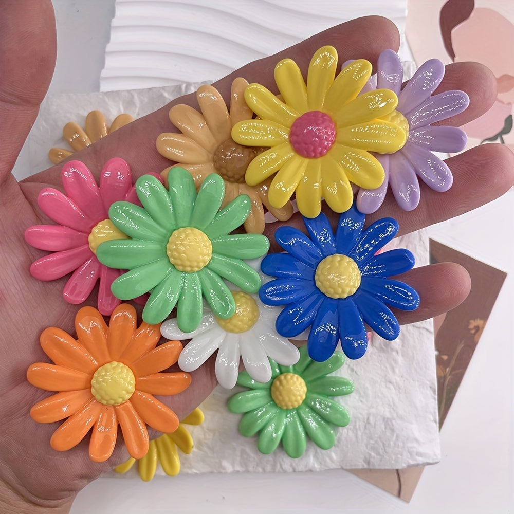 These 7pcs colorful daisy resin charms are perfect for DIY projects like hair clips, phone cases, photo frame embellishments, wall decorations, and scrapbook crafts.