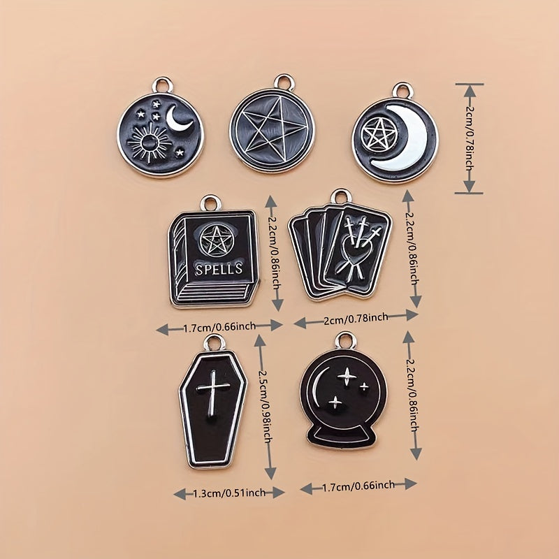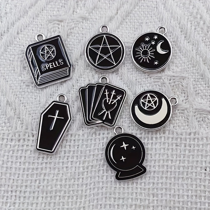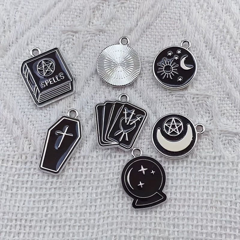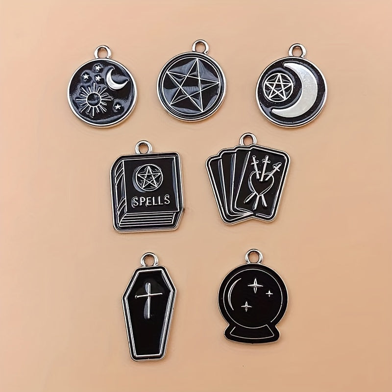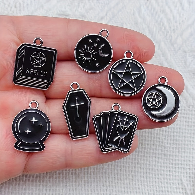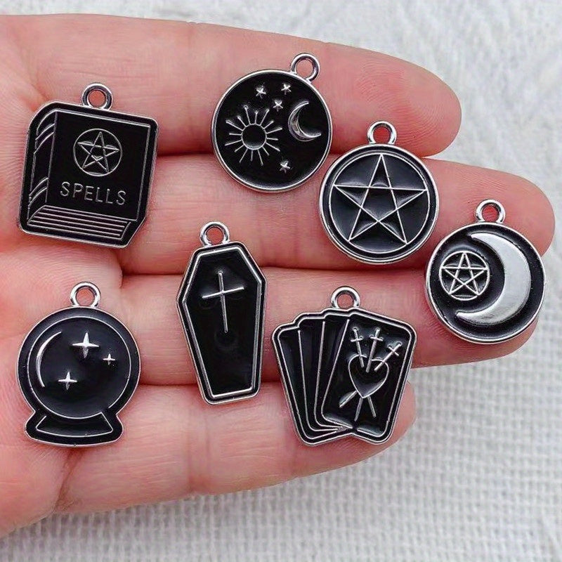 This set includes moon, star, cross, and book pattern pendants made of enamel alloy, perfect for creating your own jewelry such as earrings, bracelets, necklaces, and other accessories.