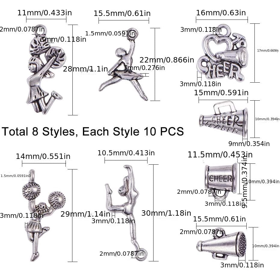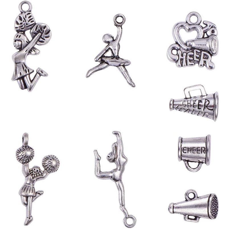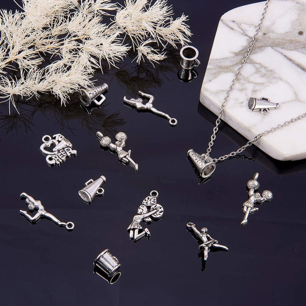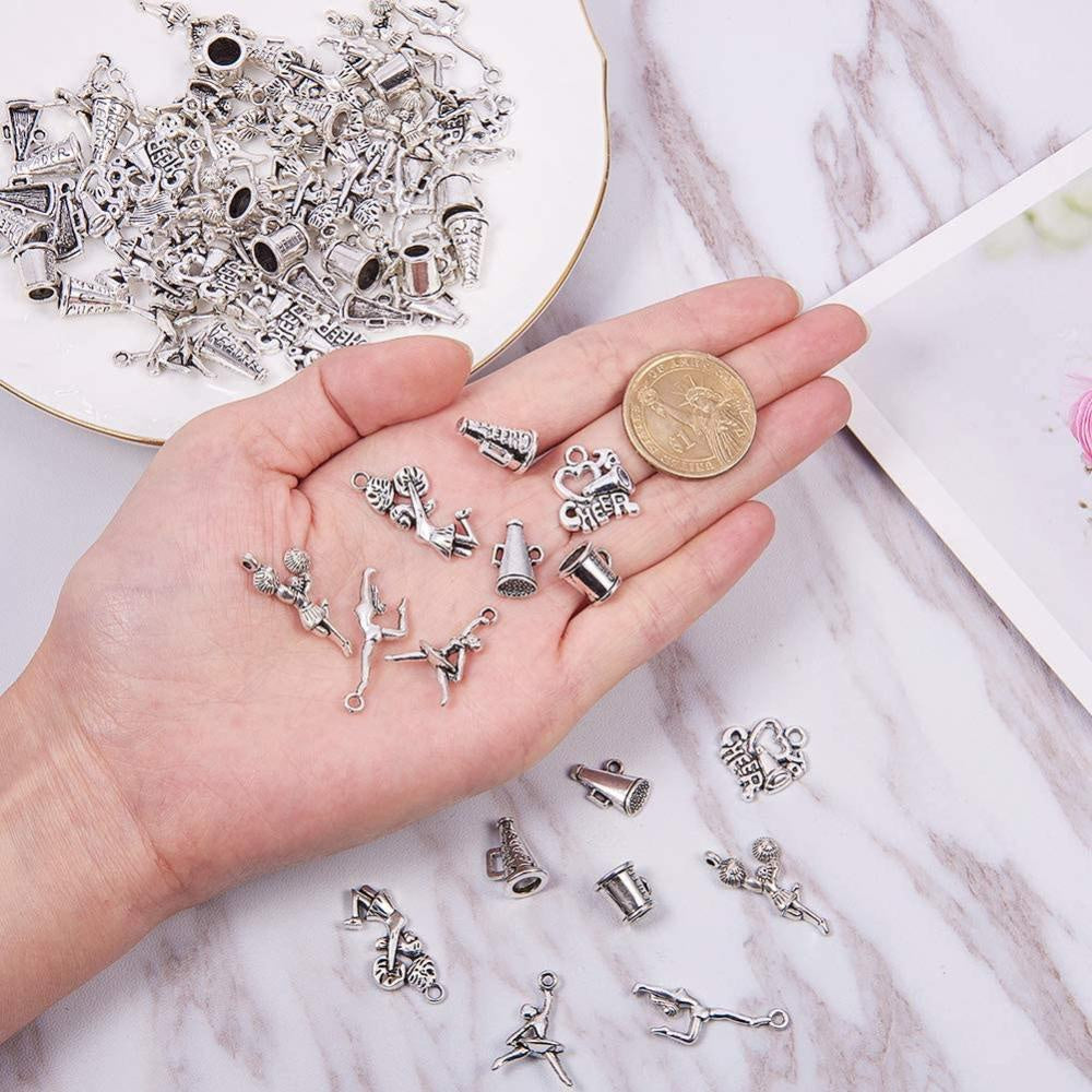 Get creative with these antique silvery cheerleading-themed alloy pendants. Perfect for crafting bracelets, necklaces, and more.