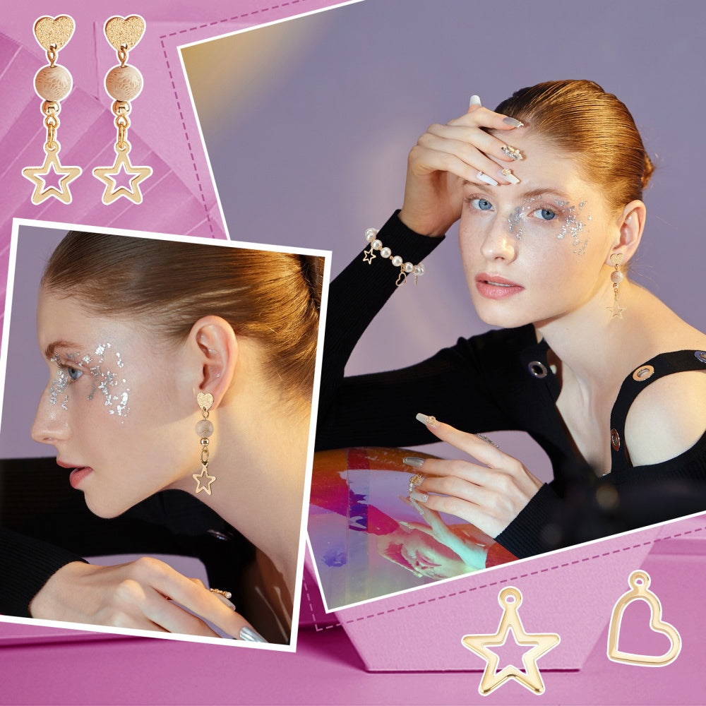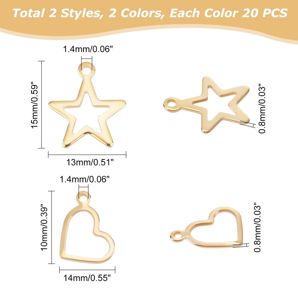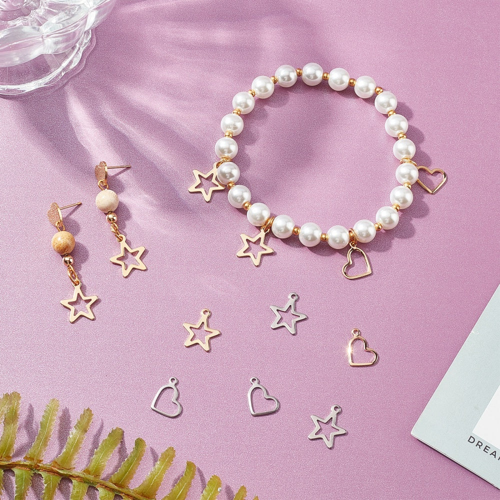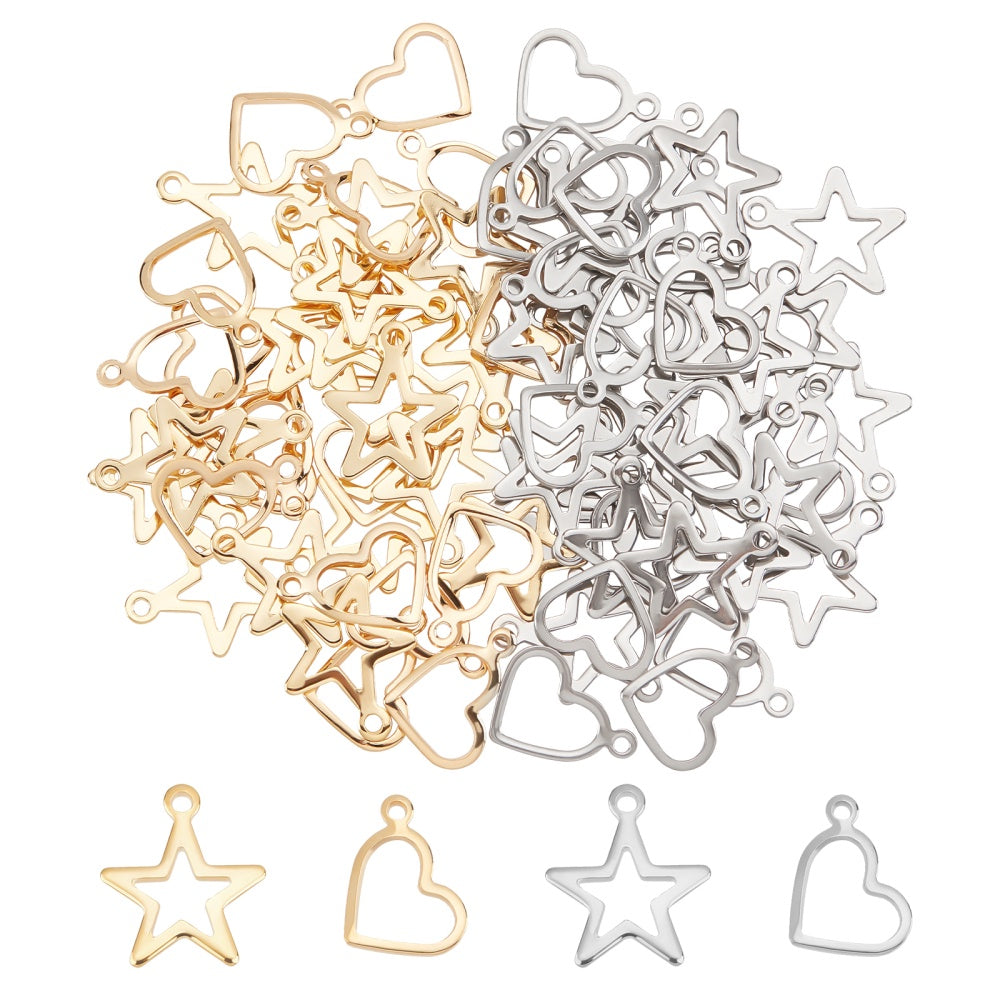Get this pack of 80 stainless steel hollow star and heart shaped pendants with a 1 4mm hole for your jewelry making projects. These dangle charms are perfect for creating unique and stylish jewelry pieces.
