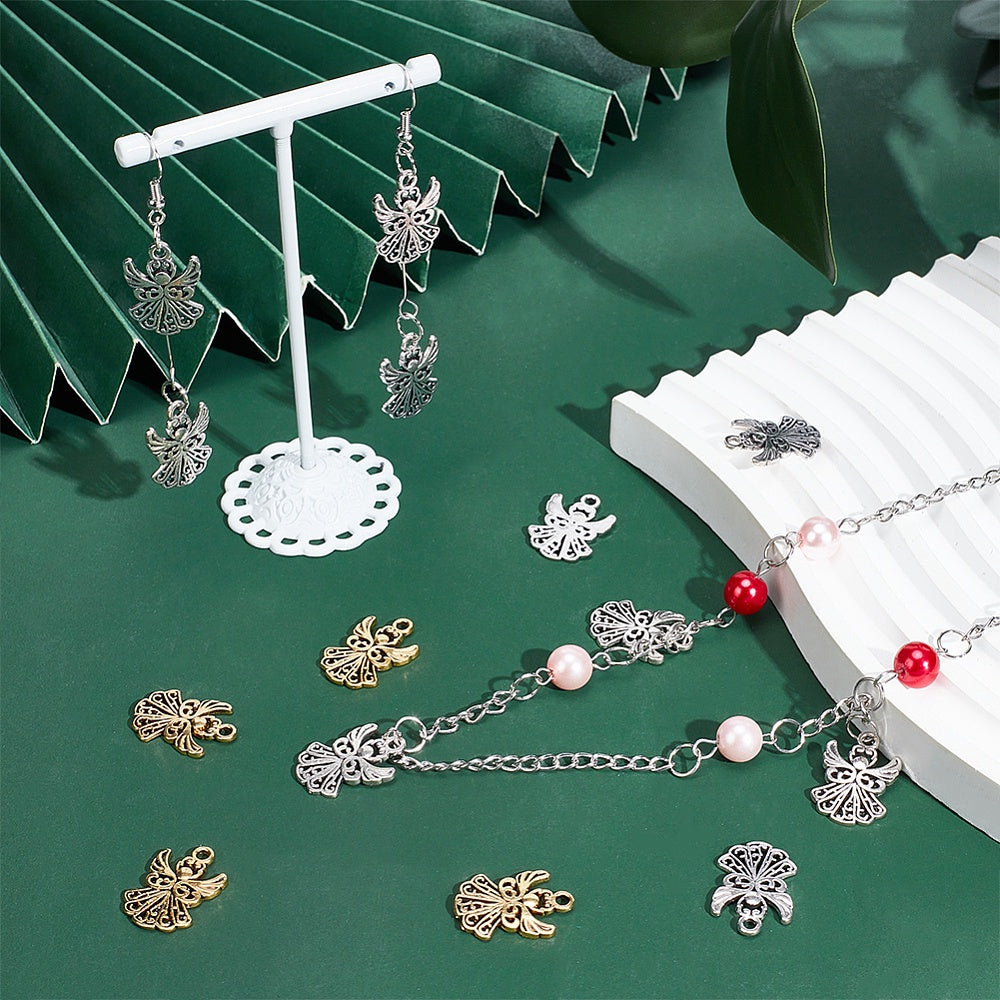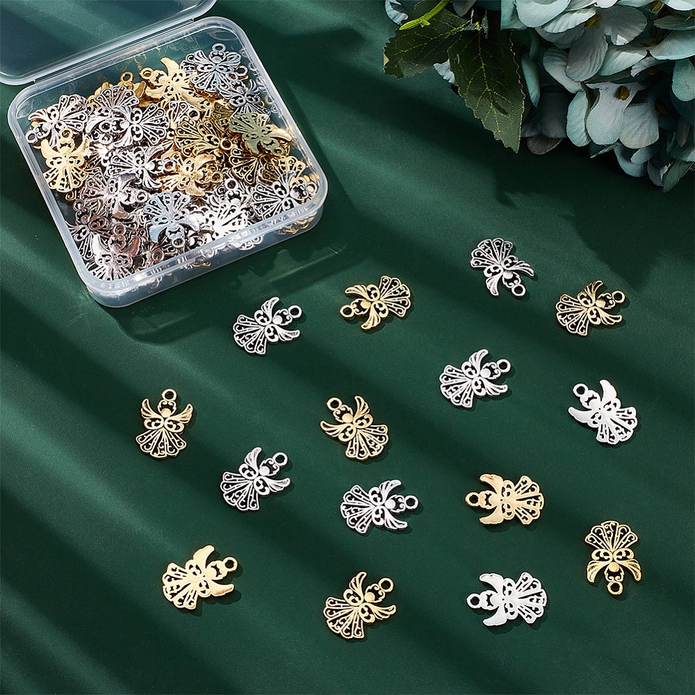 Create beautiful bracelets and necklaces with this set of 80 golden and silvery angel alloy pendants spacer beads. Perfect for DIY craft projects.