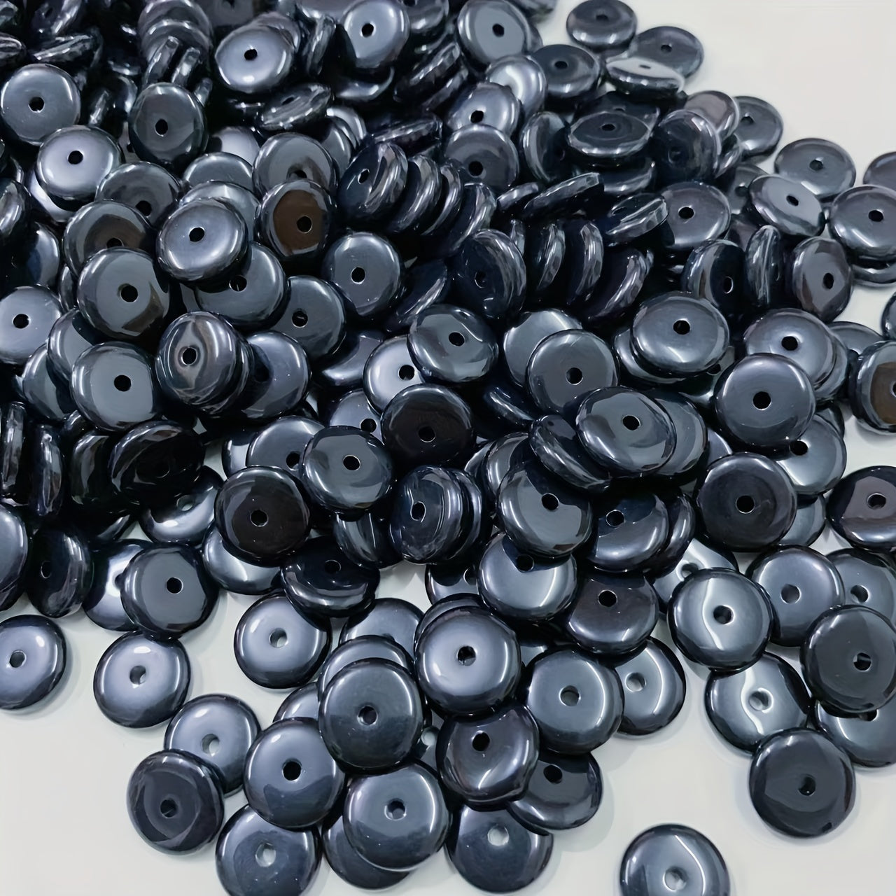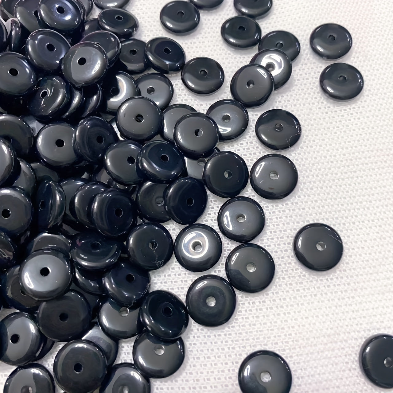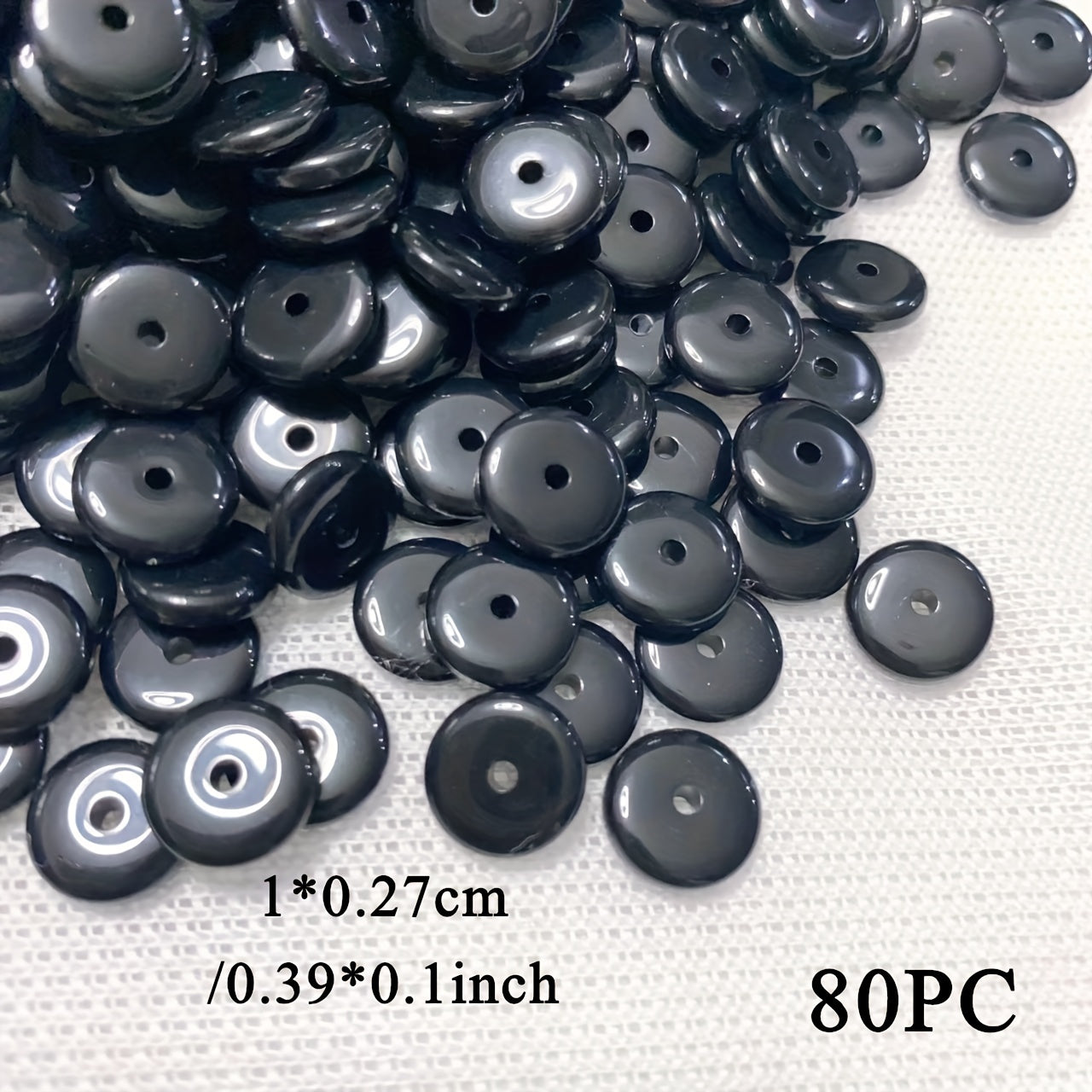 This set includes 80 flat round beads (10x2.7mm) that can be used in various crafting projects. Perfect for creating necklaces, bracelets, or adding unique accents to clothing.