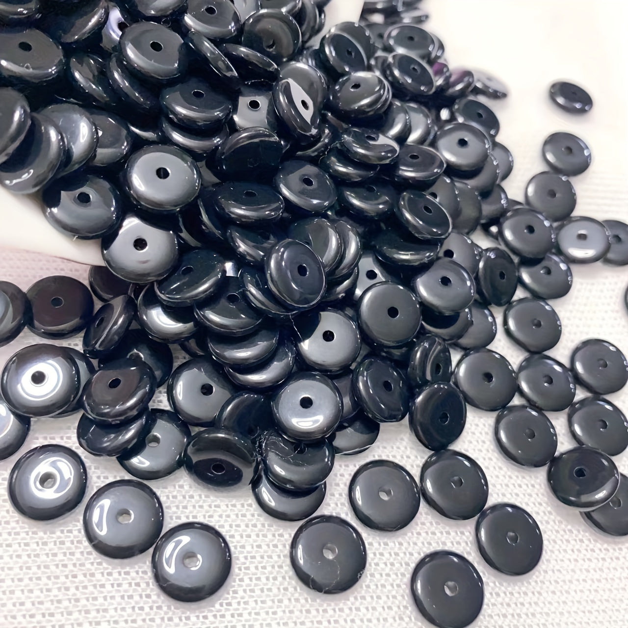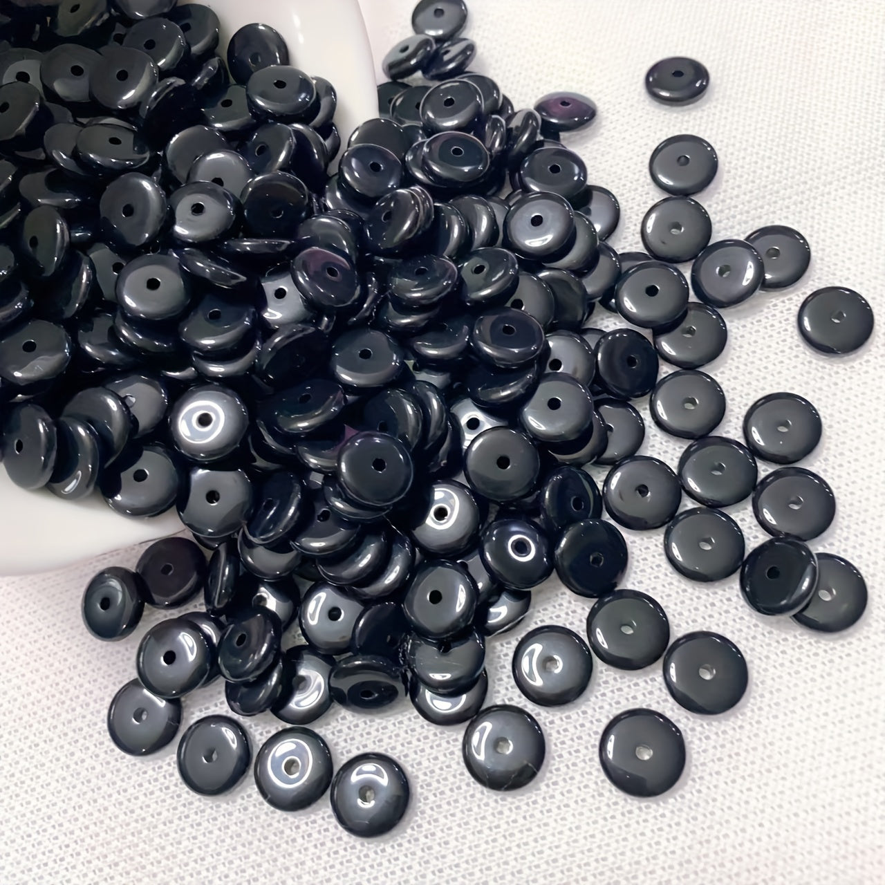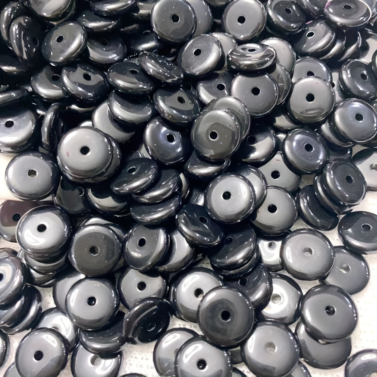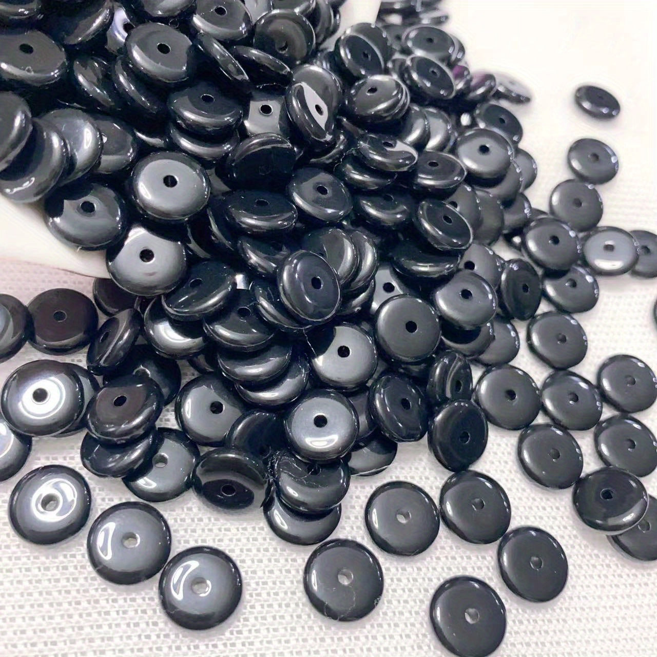 This set includes 80 flat round beads (10x2.7mm) that can be used in various crafting projects. Perfect for creating necklaces, bracelets, or adding unique accents to clothing.