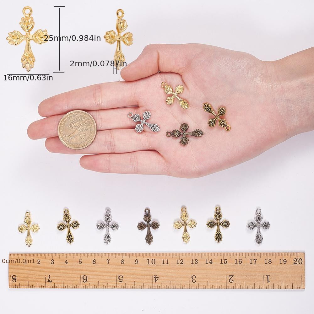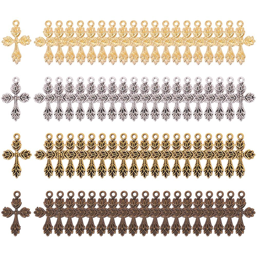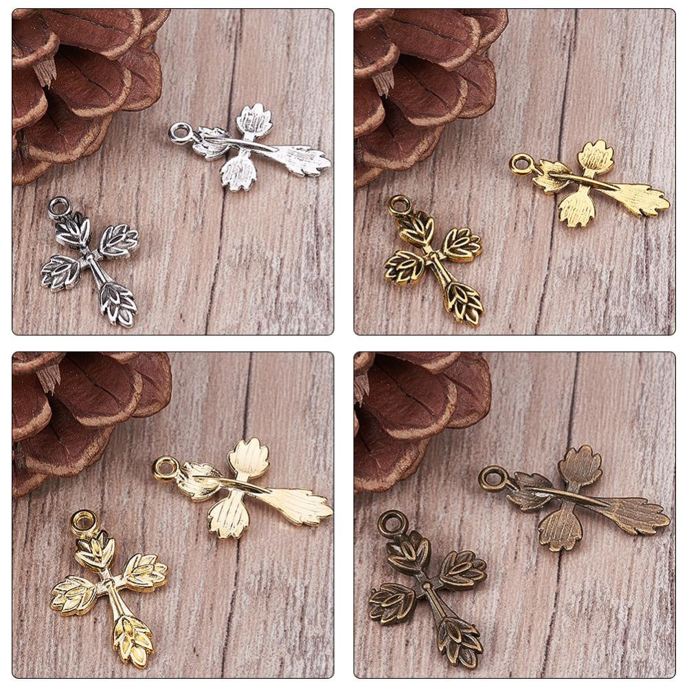 Enhance your jewelry-making projects with this set of 80 cross alloy pendants featuring a four colors leaves pattern. Perfect for creating earrings, bracelets, necklaces, and other accessories.