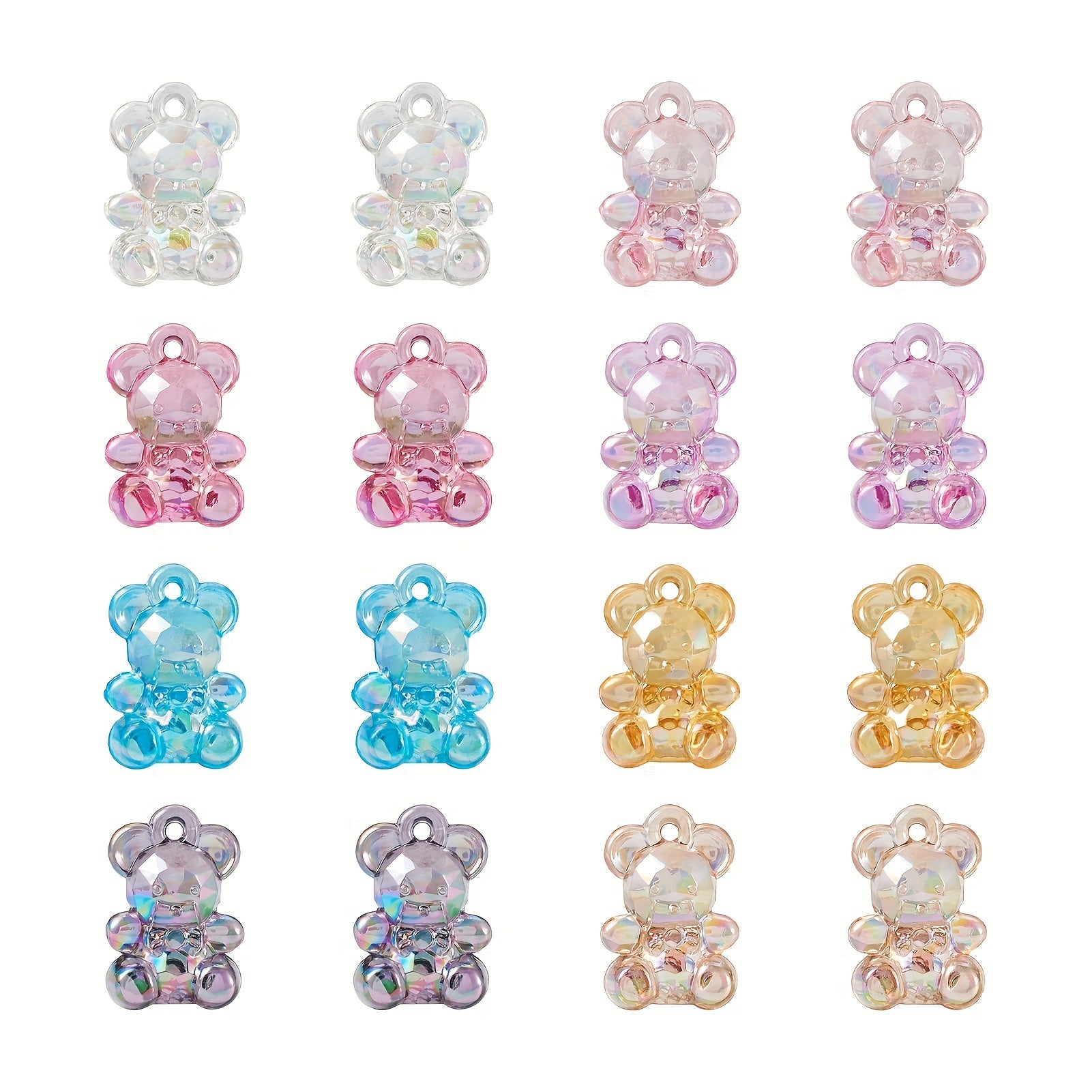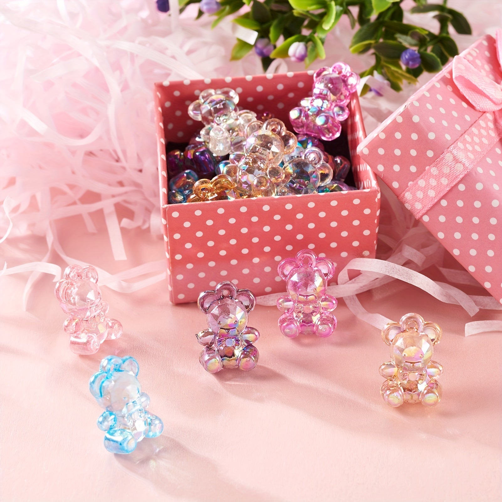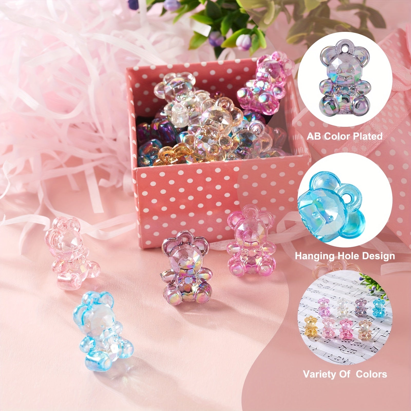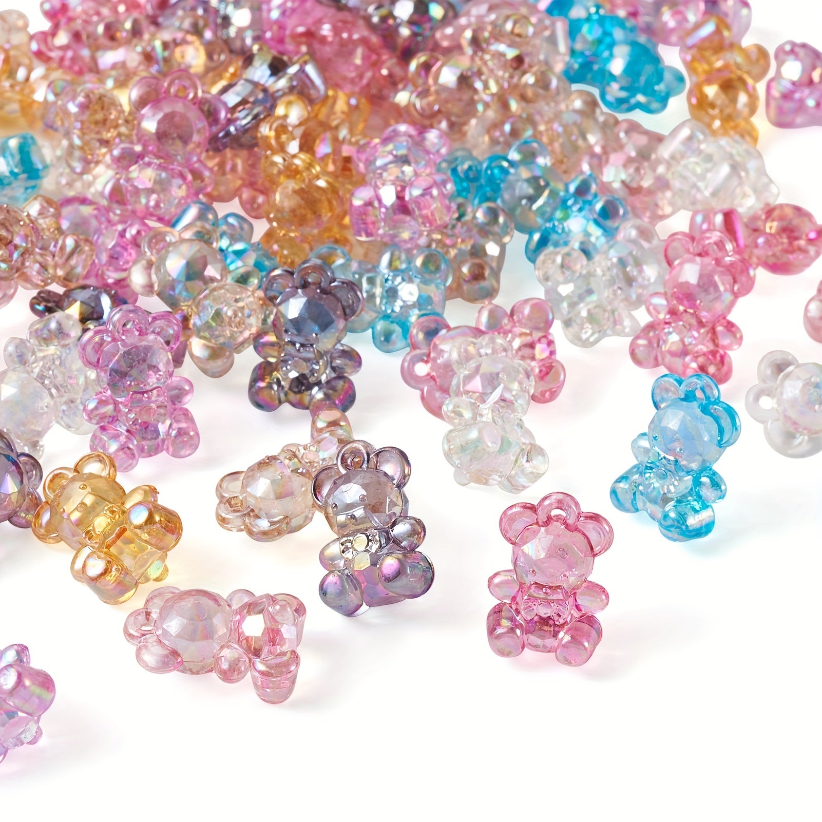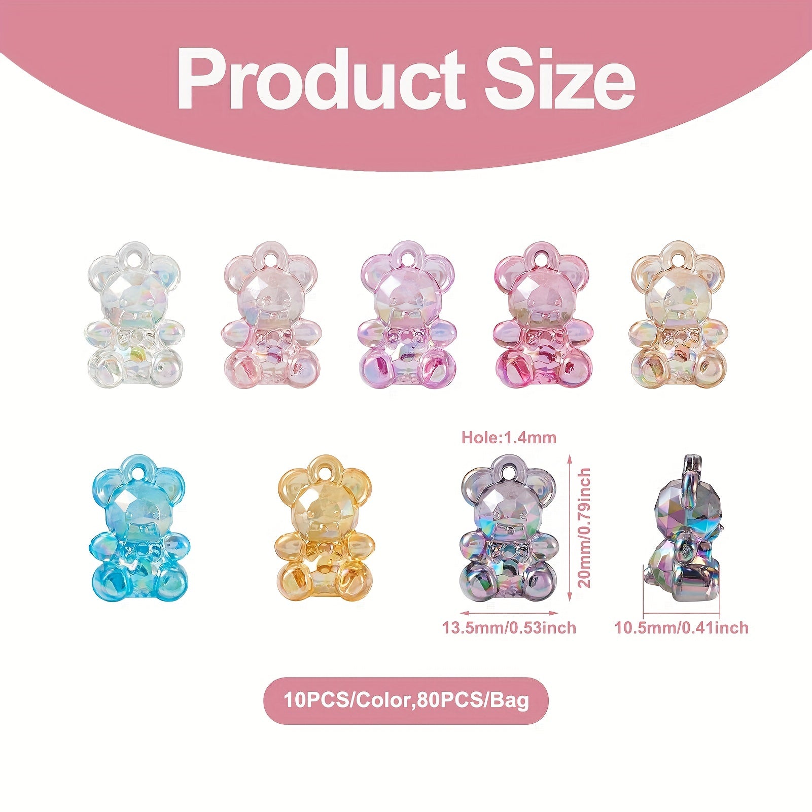 Create your own unique jewelry with this set of 80 mixed transparent acrylic bear pendants. Perfect for necklaces, bracelets, and earrings.