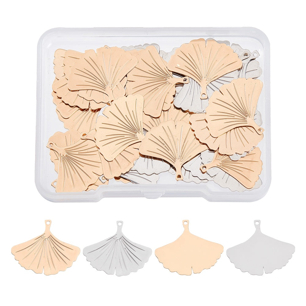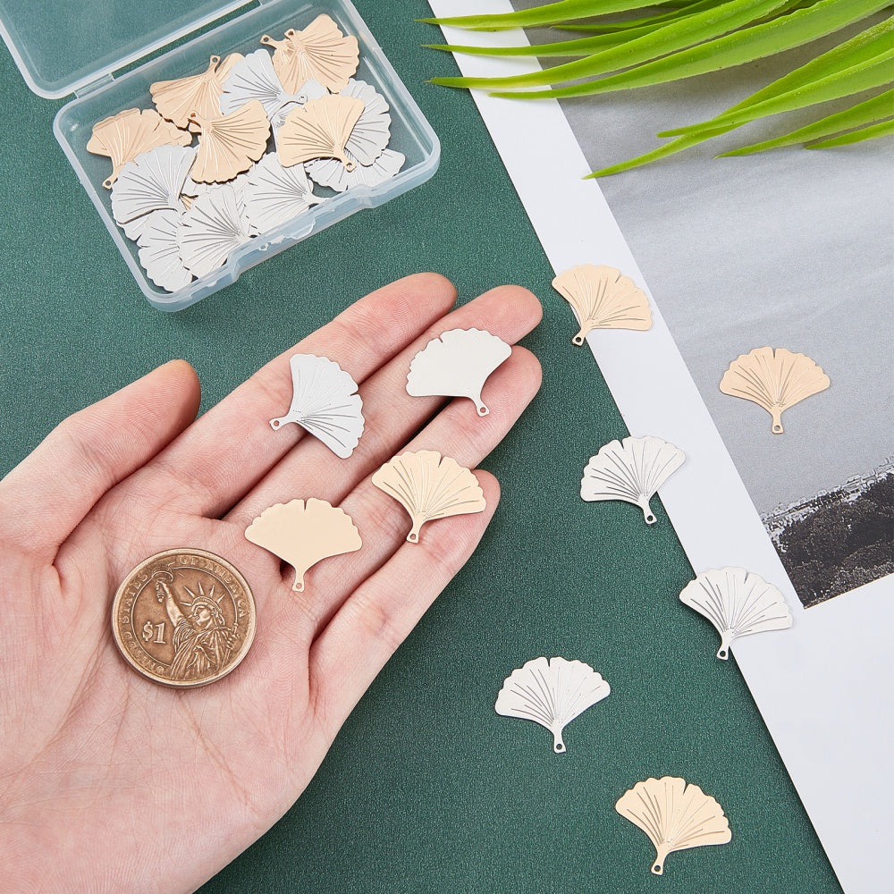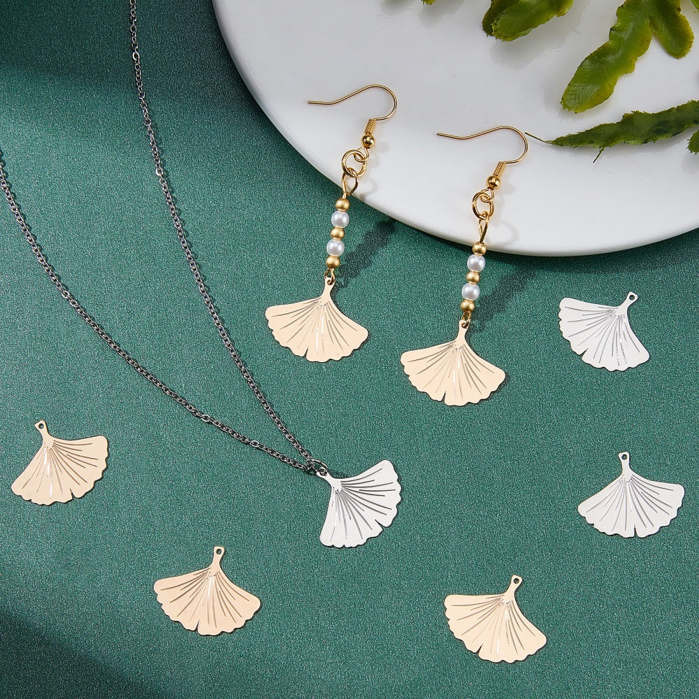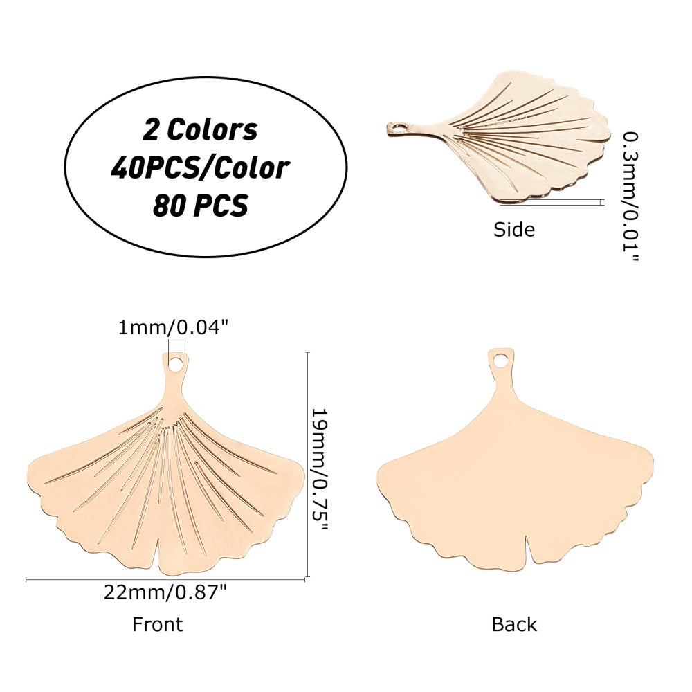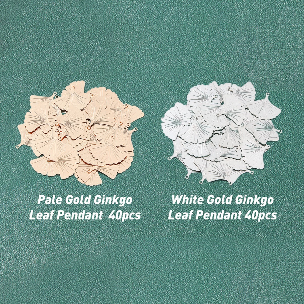 Elevate your jewelry making with these 80 ginkgo leaf pendants in platinum and light golden brass. Perfect for bracelet, necklace, and keychain accessories.