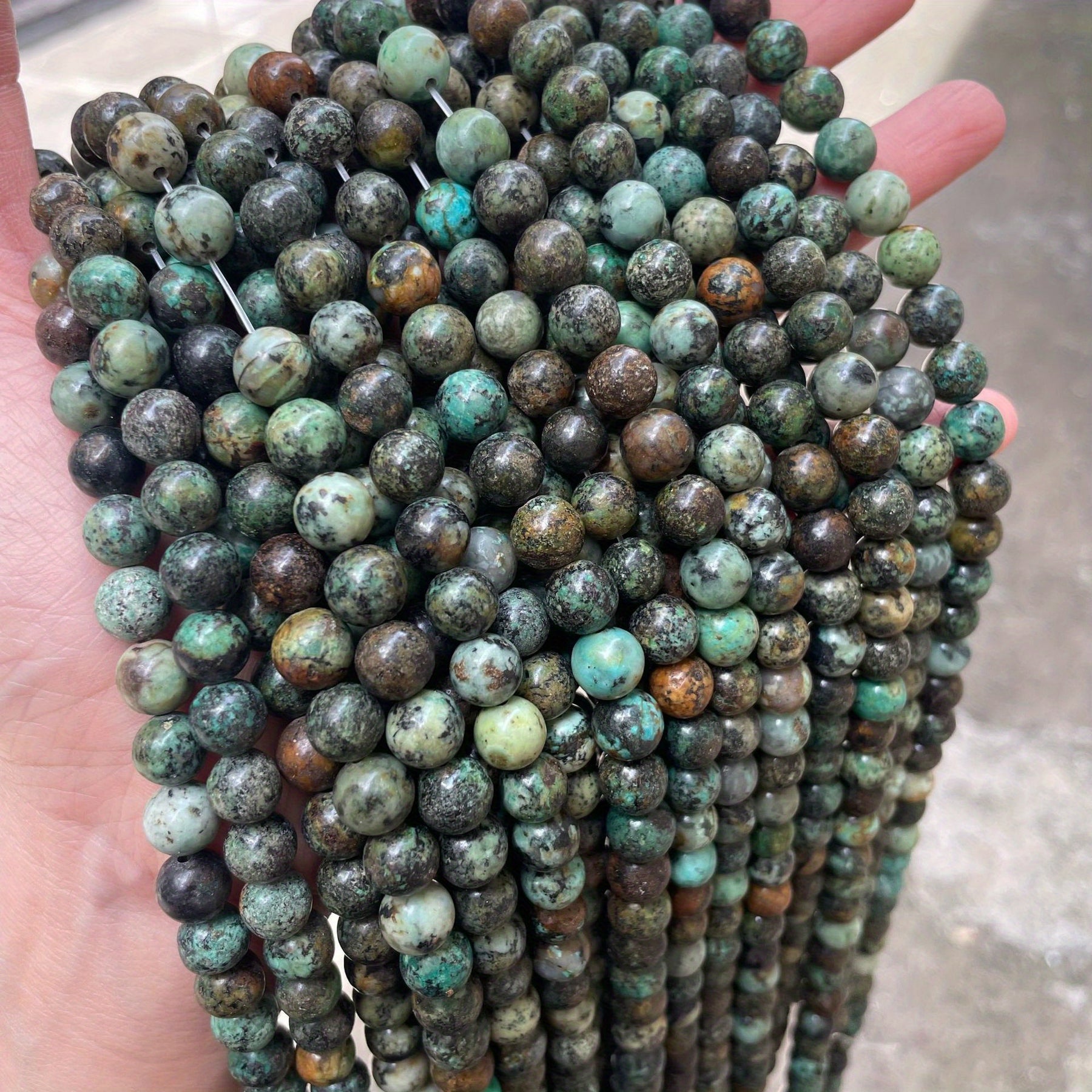 Get these natural African turquoise beads to create vintage gemstone jewelry. These round beads are perfect for making bracelets and other DIY projects.