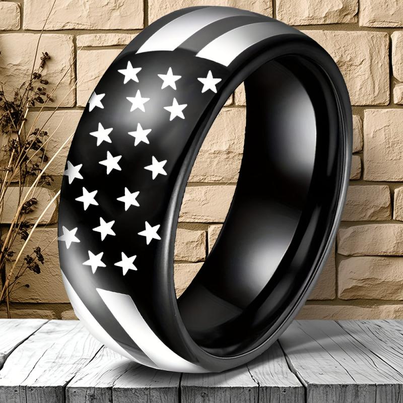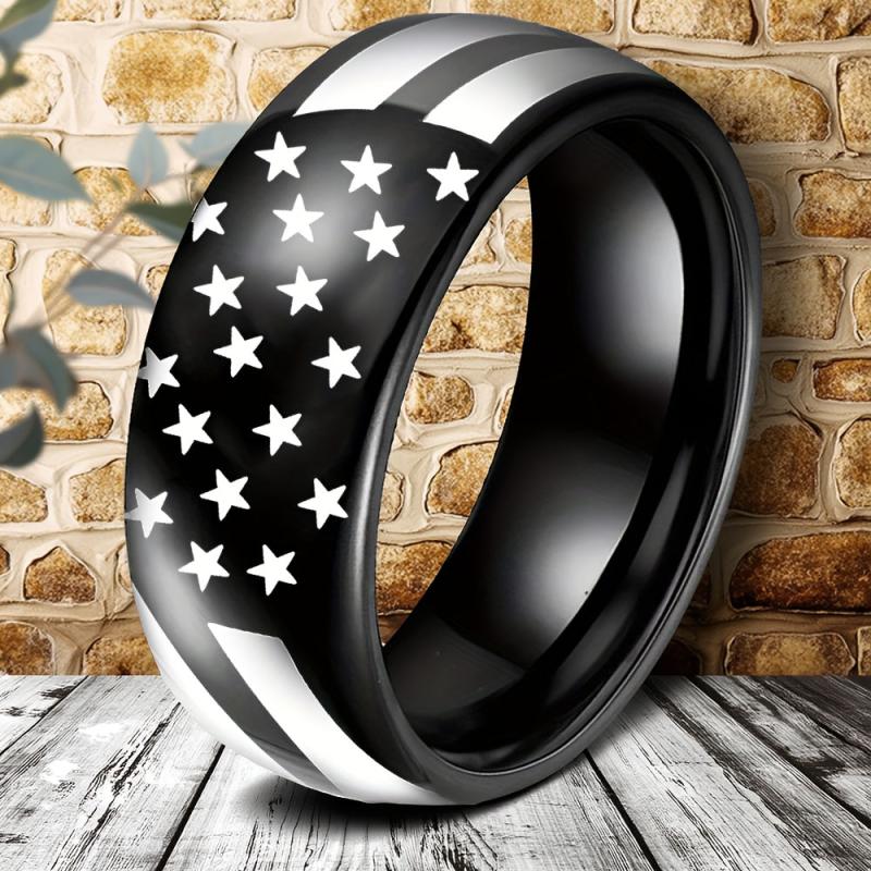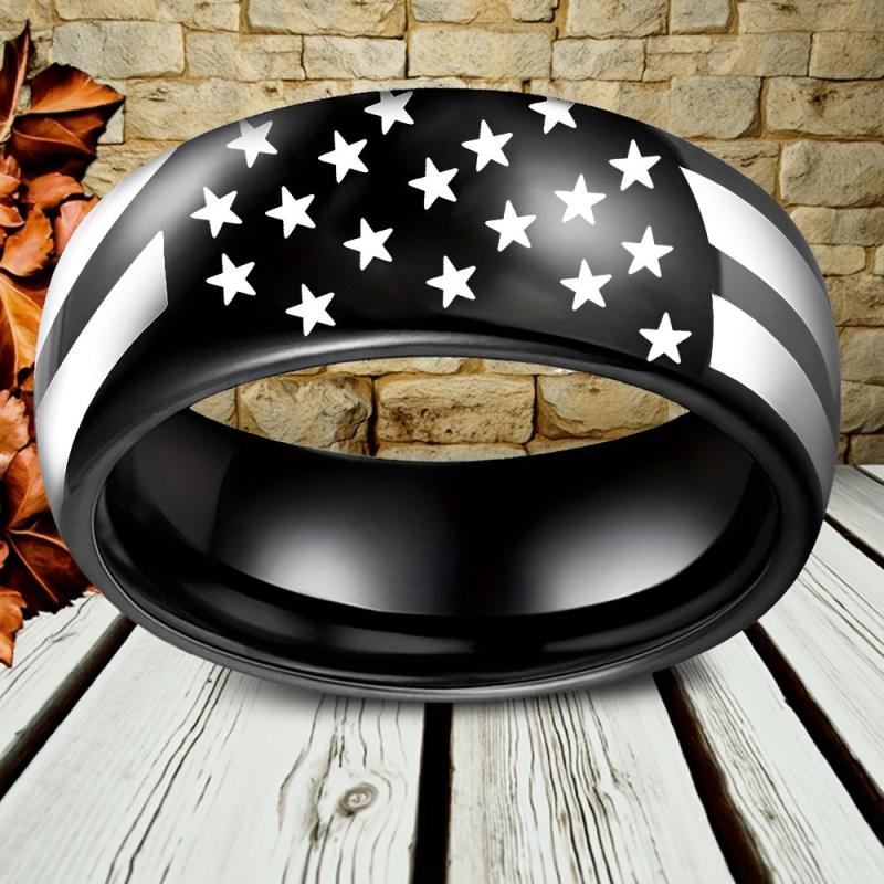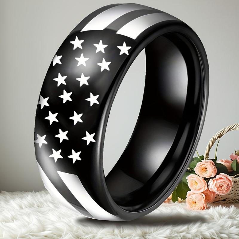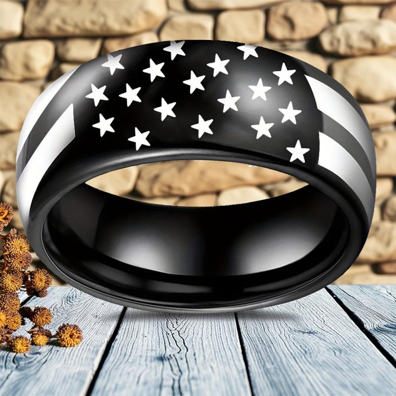 Show your patriotism with this 8mm stainless steel ring featuring the American flag design. Perfect for both men and women, this ring is a great gift for the patriotic boy in your life.