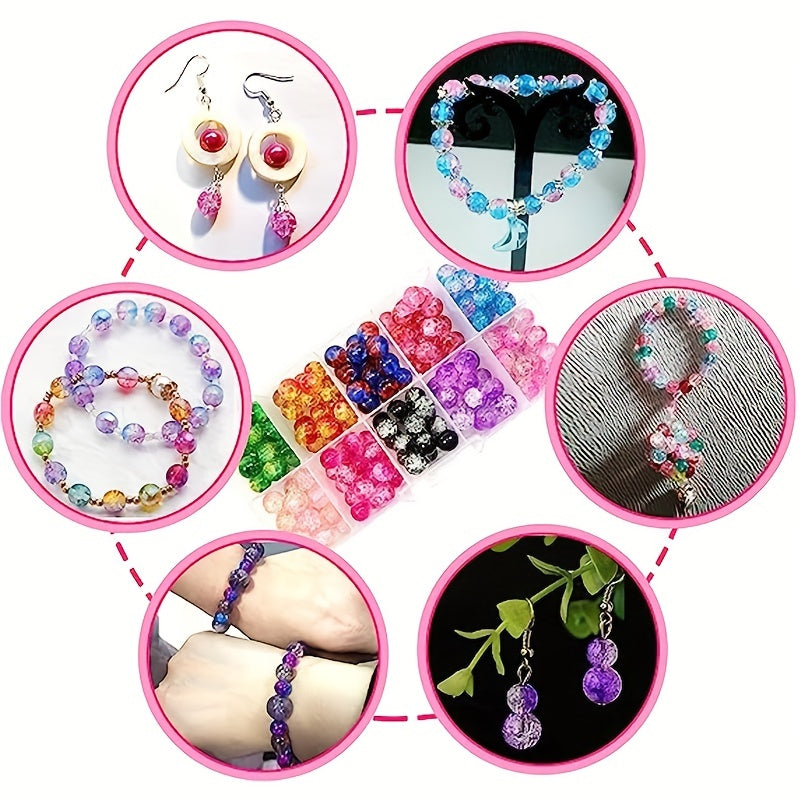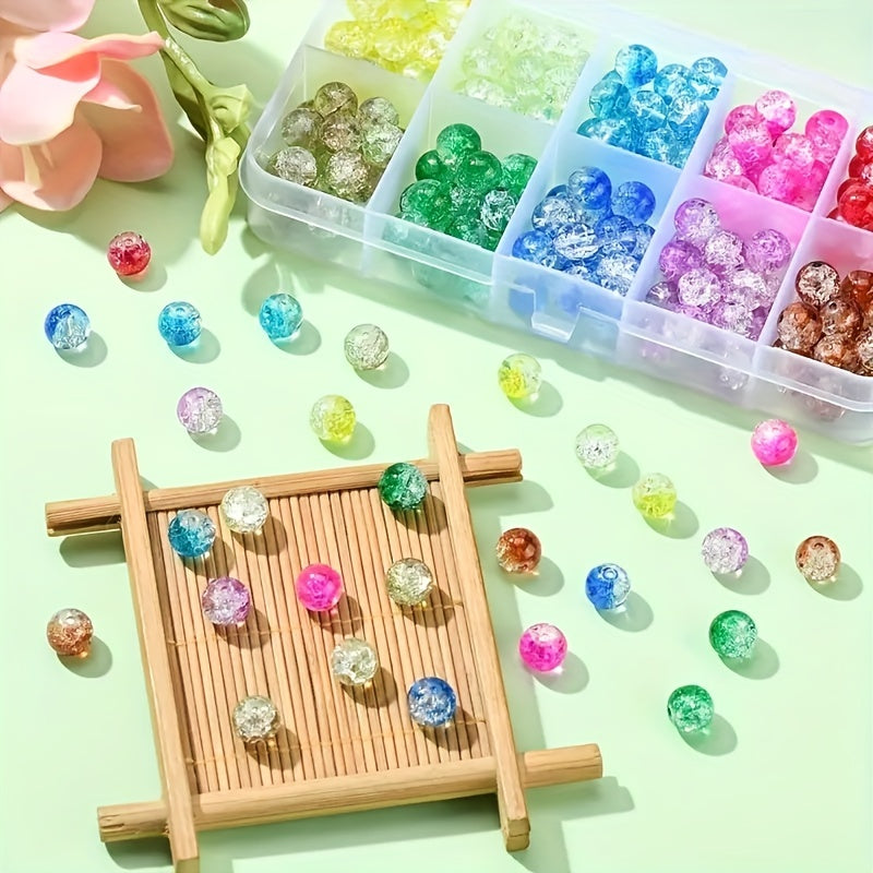 Get creative with these colorful crackle glass pattern acrylic beads perfect for making DIY earrings, bracelets, necklaces, and other accessories.