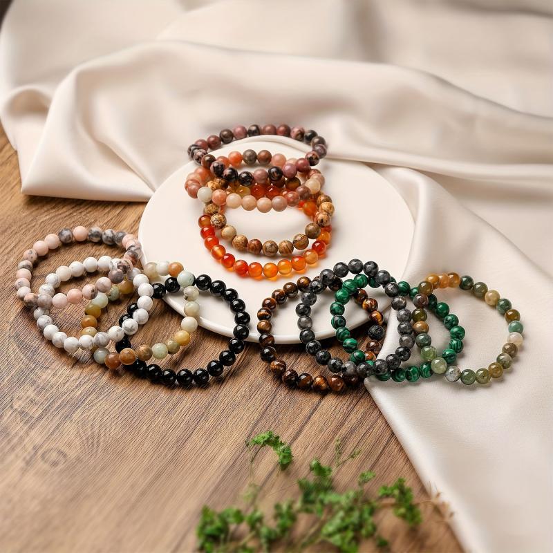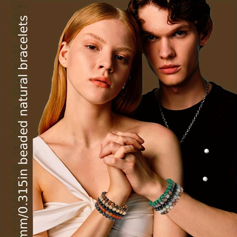 This natural stone bead bracelet is perfect for both men and women. It features 8mm gemstones and an elastic band for easy wearing during yoga or everyday use.