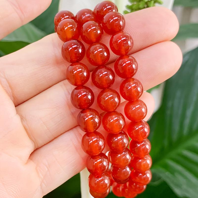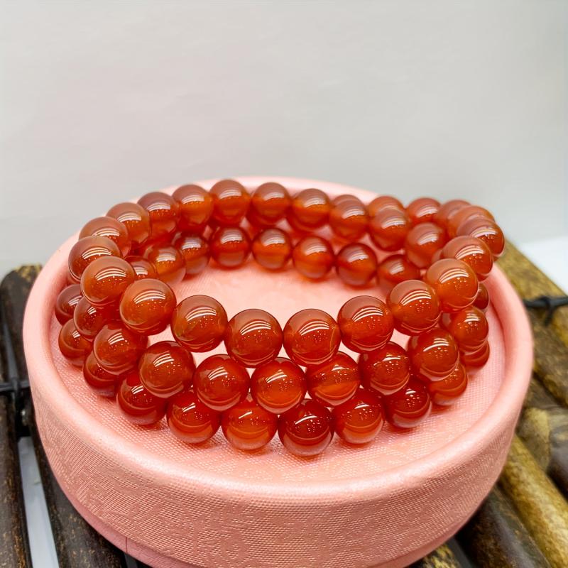 Add a touch of bohemian flair to your outfit with this 8mm natural red agate bracelet. Perfect for parties, music festivals, or everyday wear, this single band bracelet features three layers for a unique and stylish look.