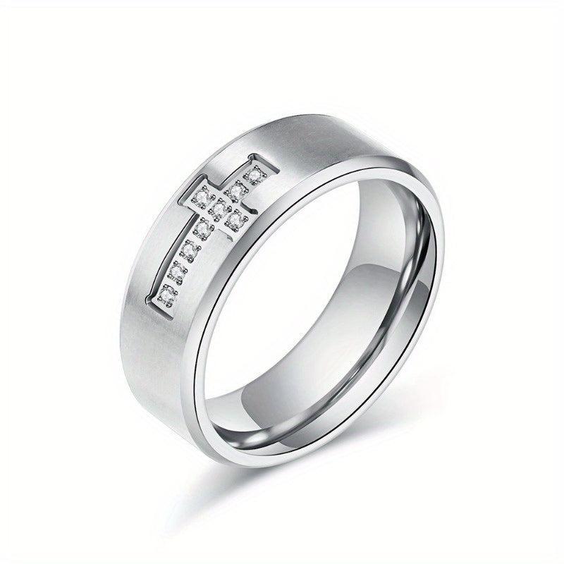 Add a stylish touch to your look with this European stainless steel ring featuring an artificial crystal cross design. Perfect for a minimalist hand accessory.