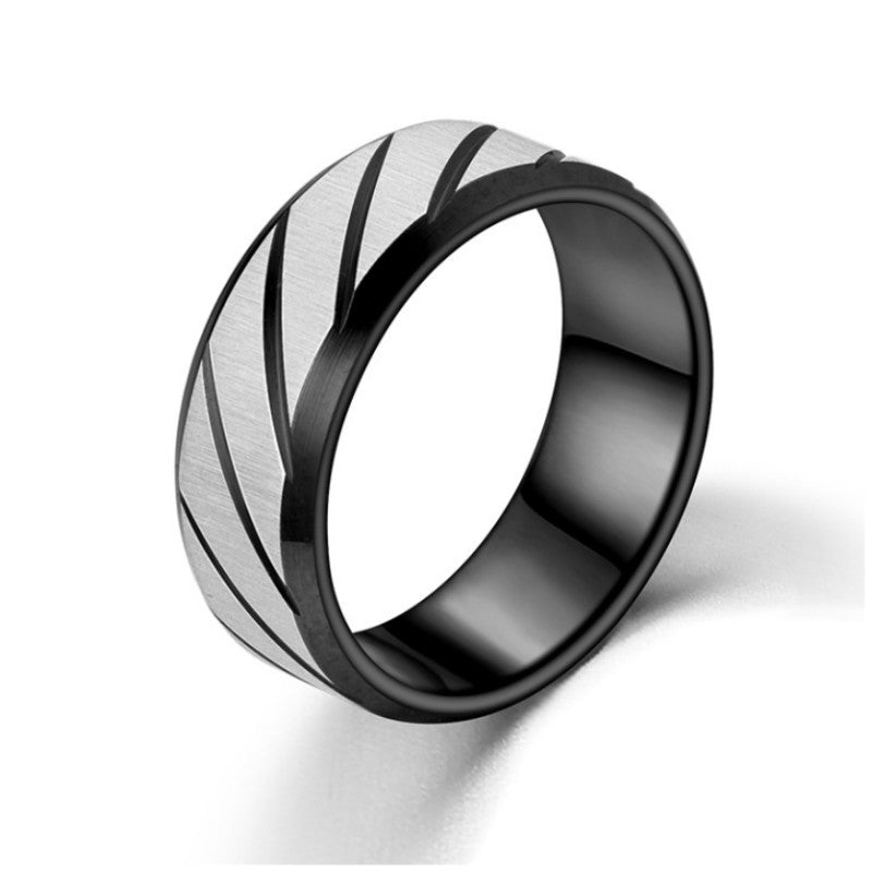 This 8MM titanium steel ring is designed for men with a unique floral twill pattern. It is made of high-quality stainless steel, ensuring durability and style.