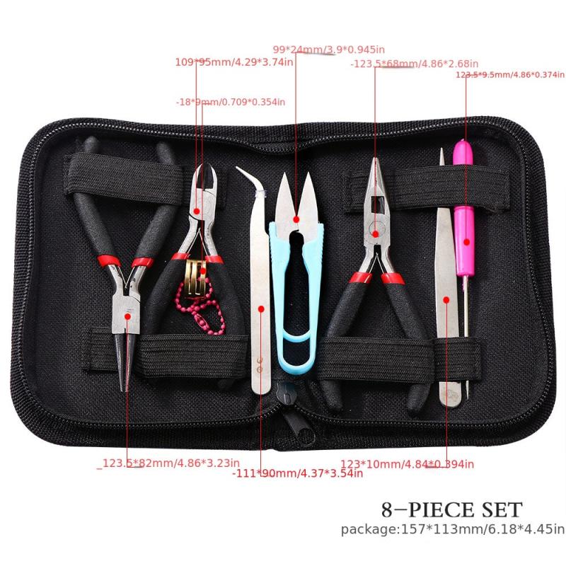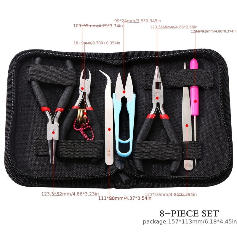 This set includes 8 essential DIY tools for jewelry making, perfect for craft enthusiasts and hobbyists.