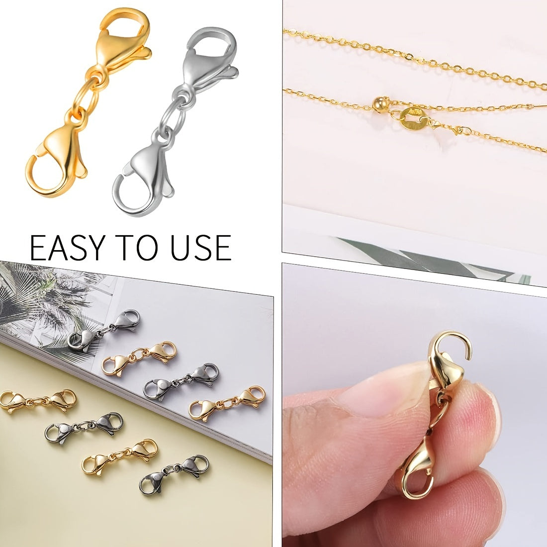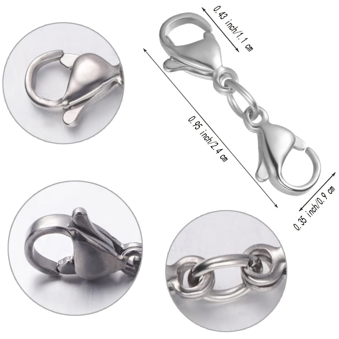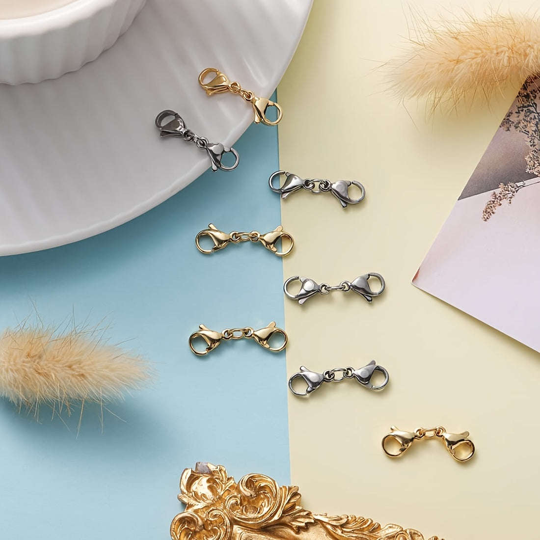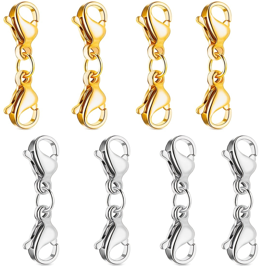 This set includes 8 double lobster clasp extenders with open jump rings, perfect for DIY jewelry projects. The double opening design allows for versatile use.