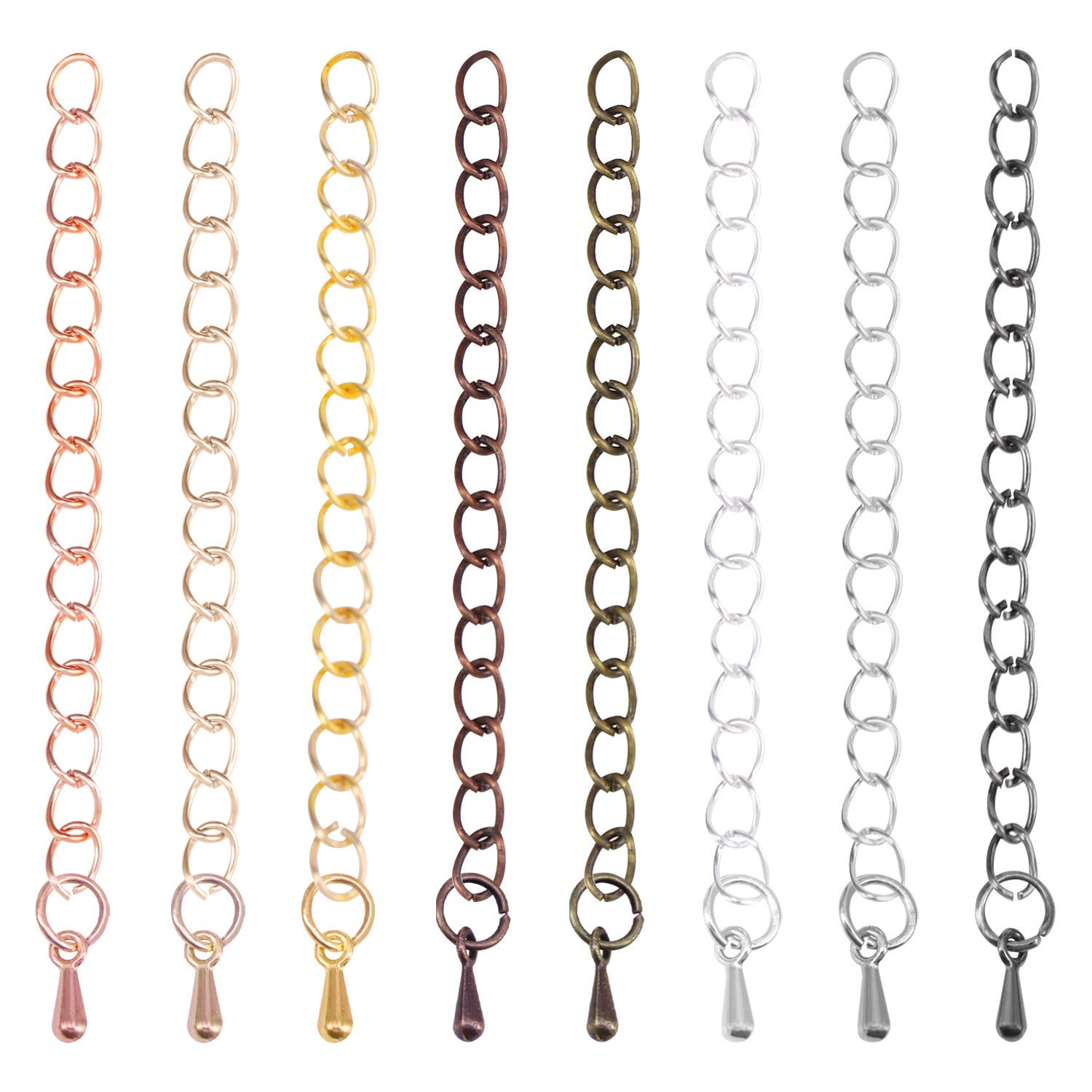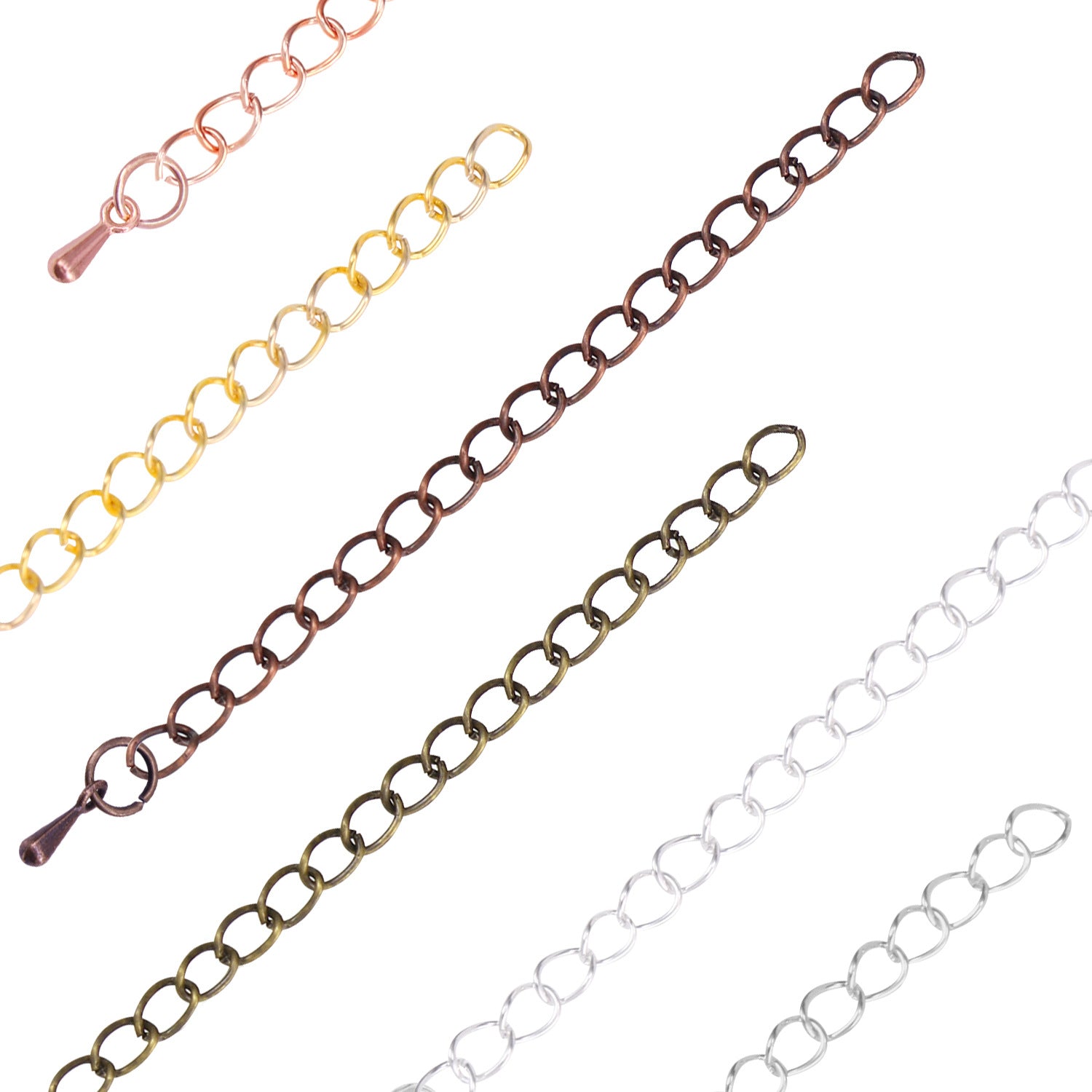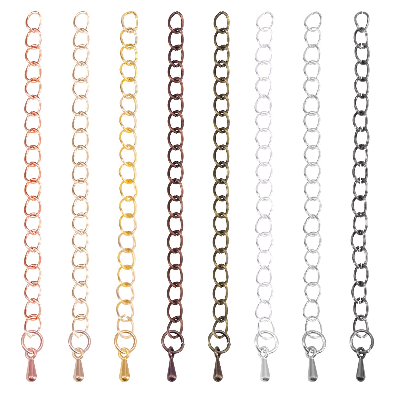 Enhance your jewelry pieces with these 8 extension chains suitable for various ornaments. Ideal for customizing and lengthening bracelets, necklaces, and anklets.