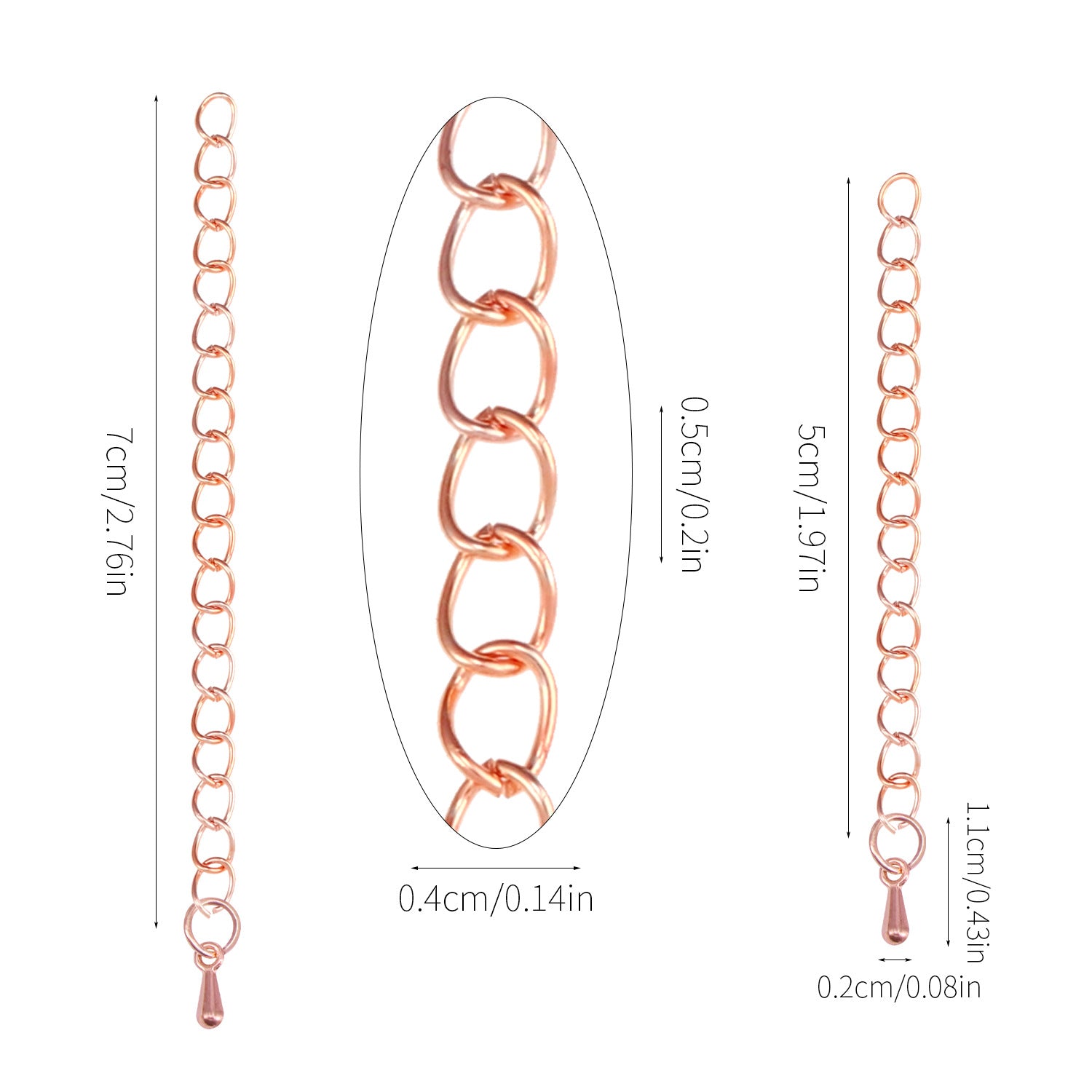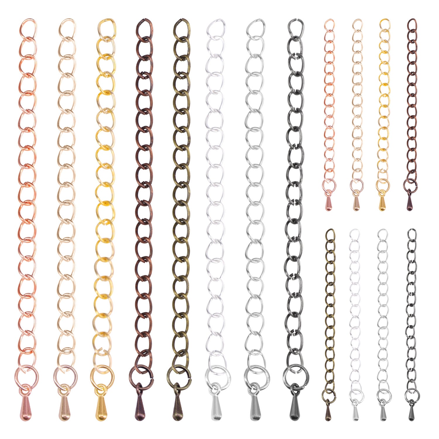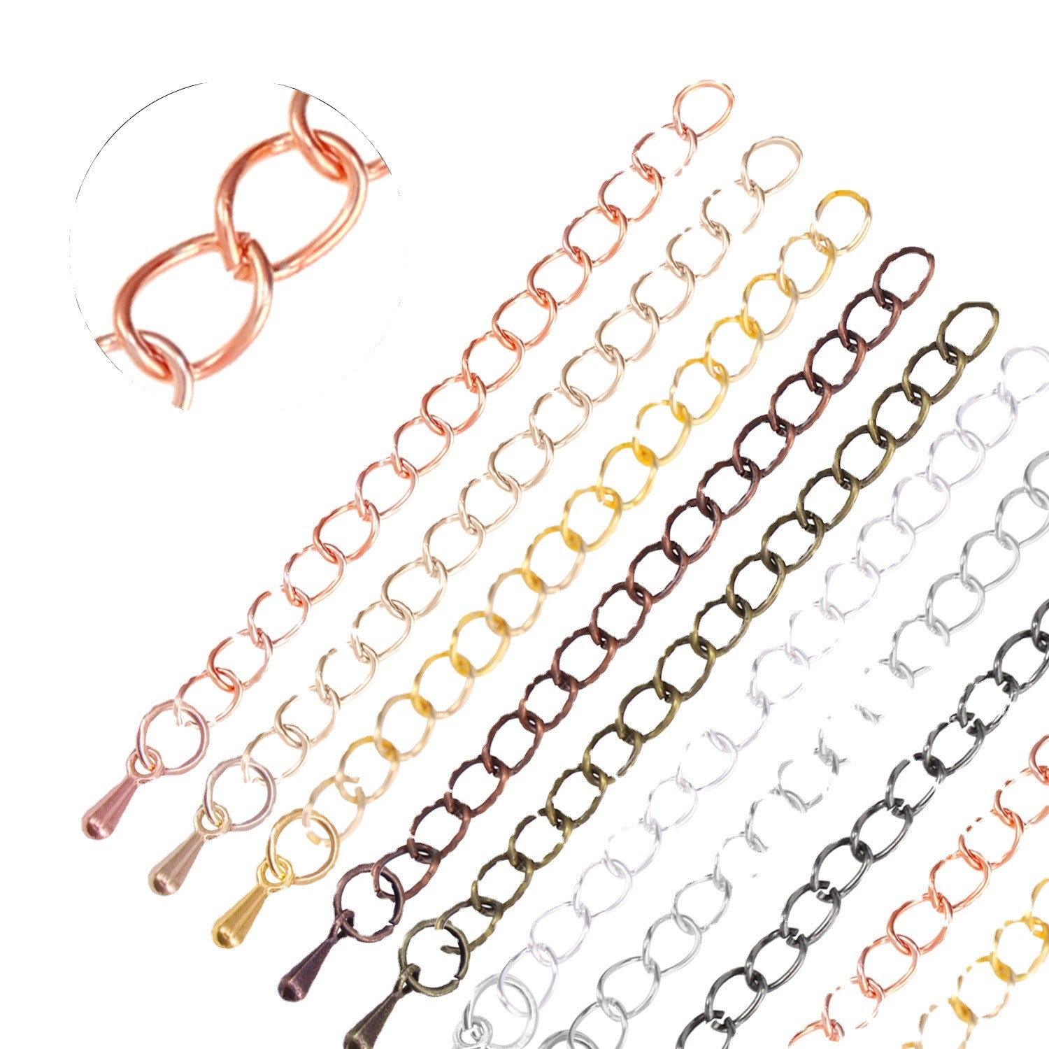 Enhance your jewelry pieces with these 8 extension chains suitable for various ornaments. Ideal for customizing and lengthening bracelets, necklaces, and anklets.