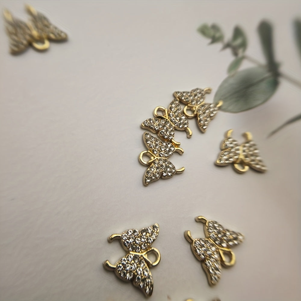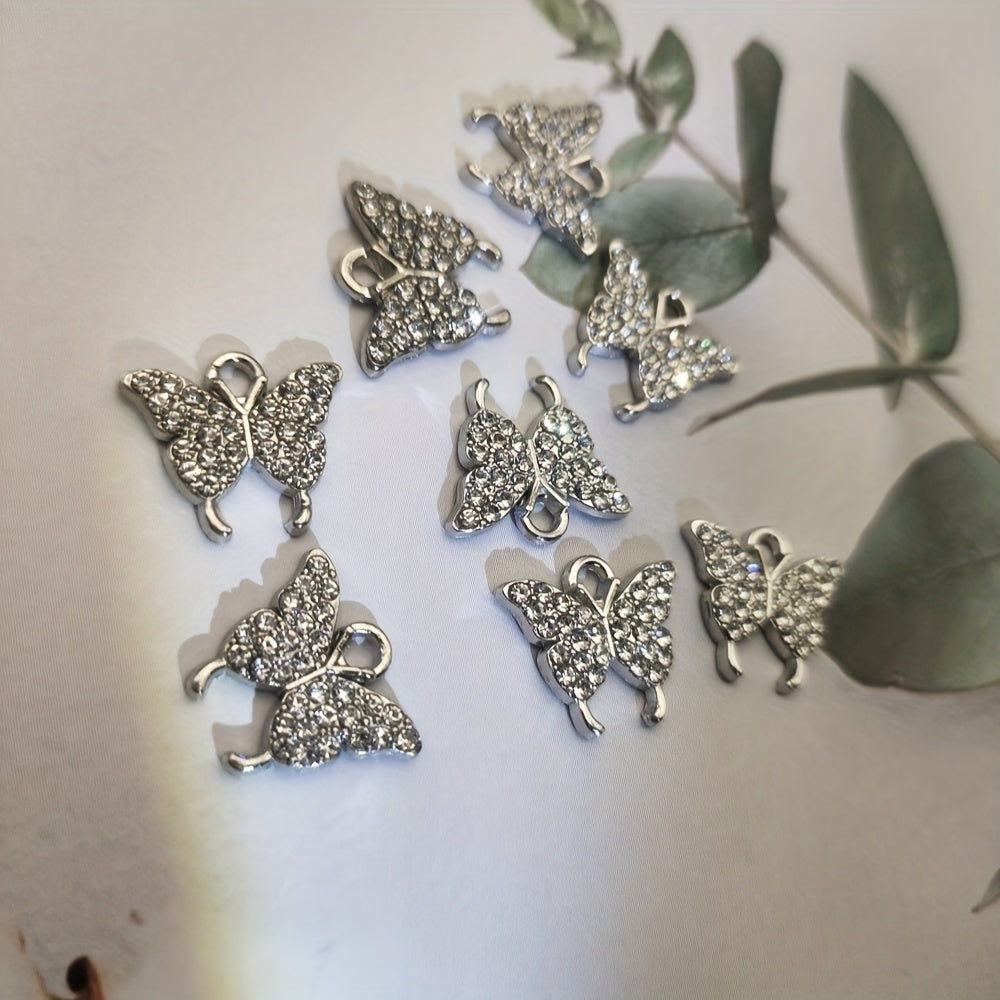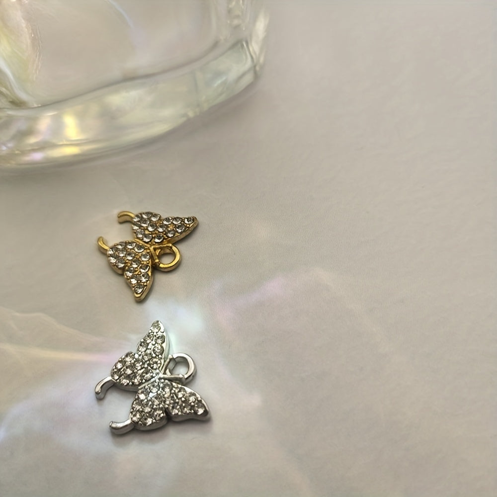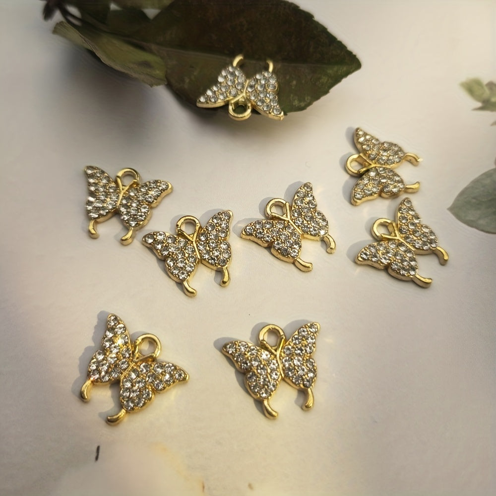 Enhance your DIY jewelry projects with these 8pcs golden and silver sparkling small butterfly charms. Perfect for necklaces, bracelets, and other accessories.