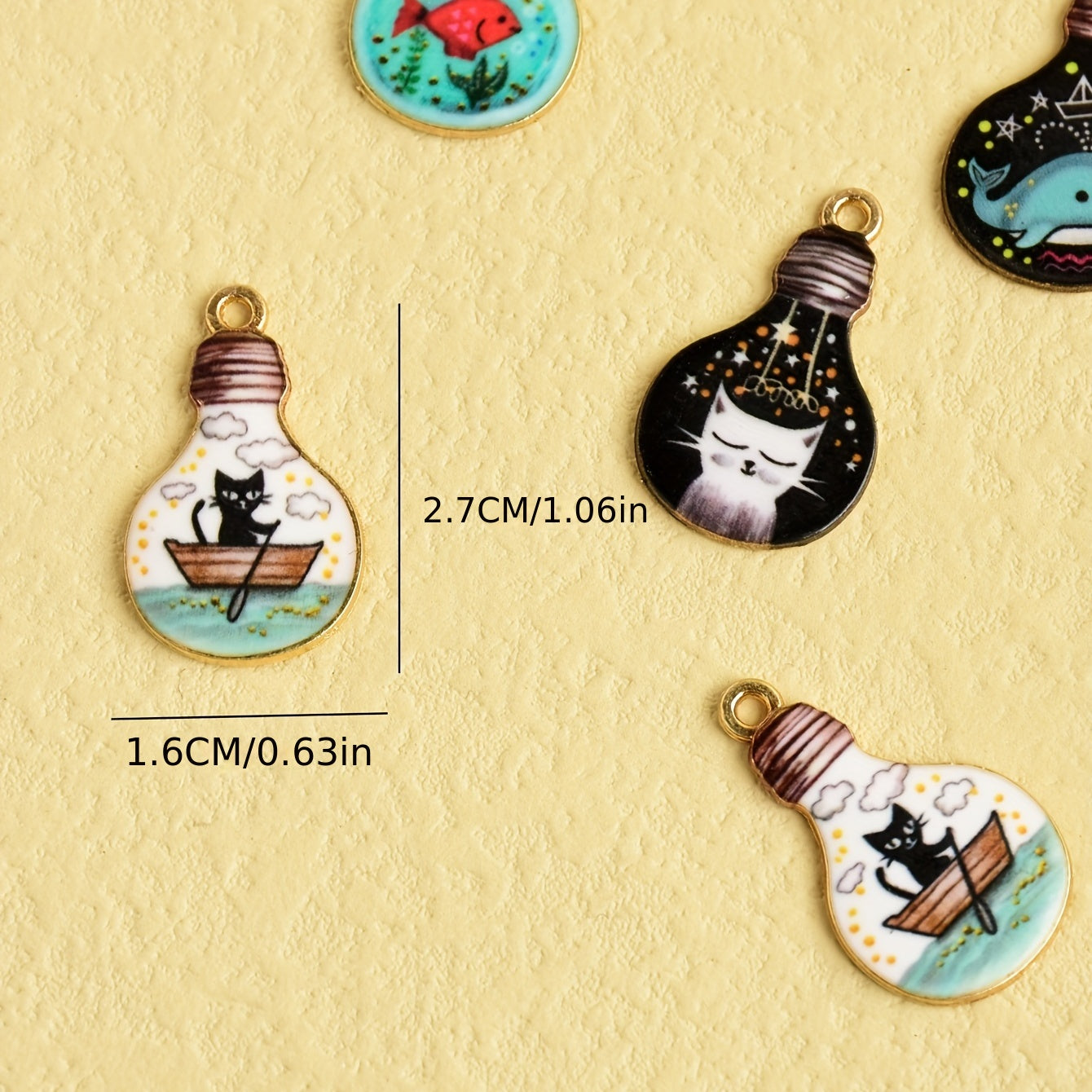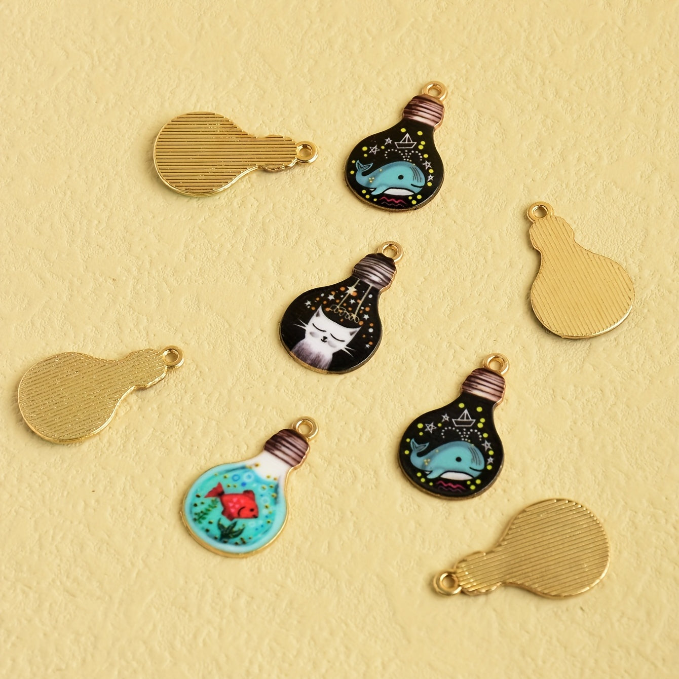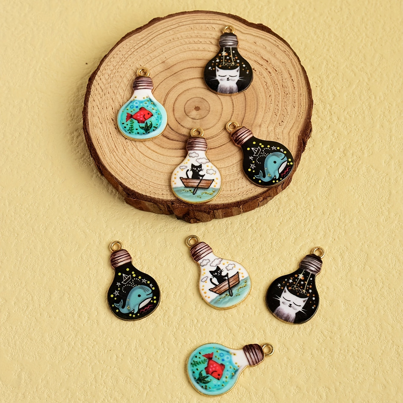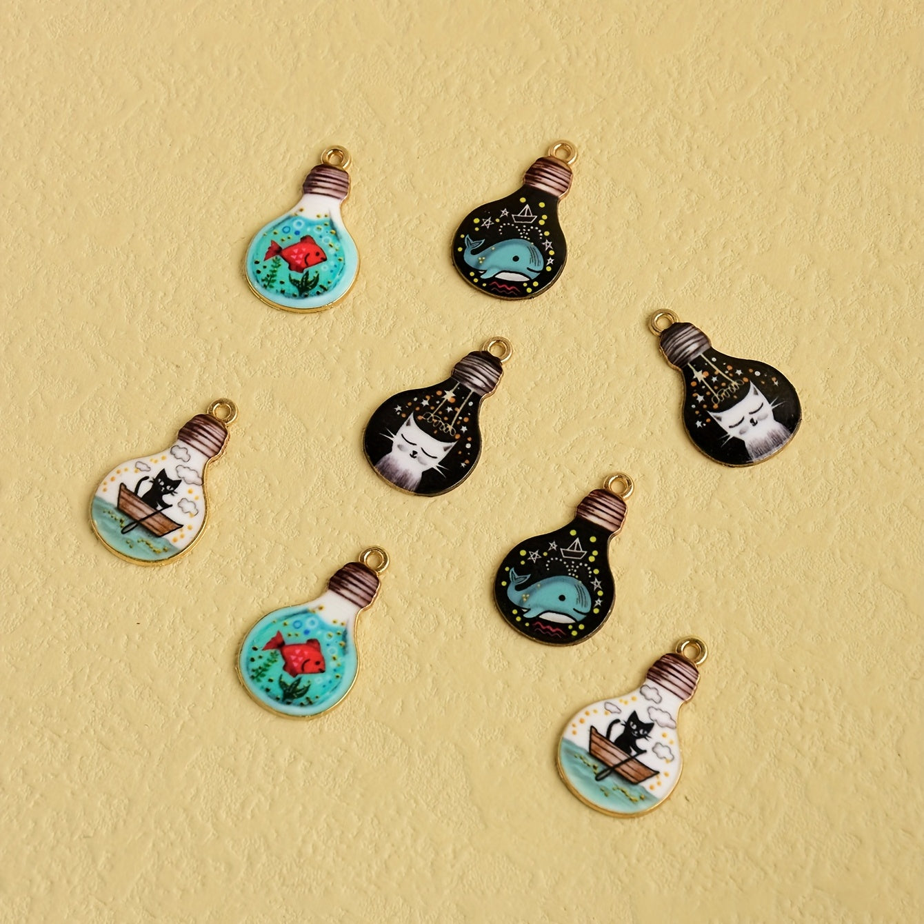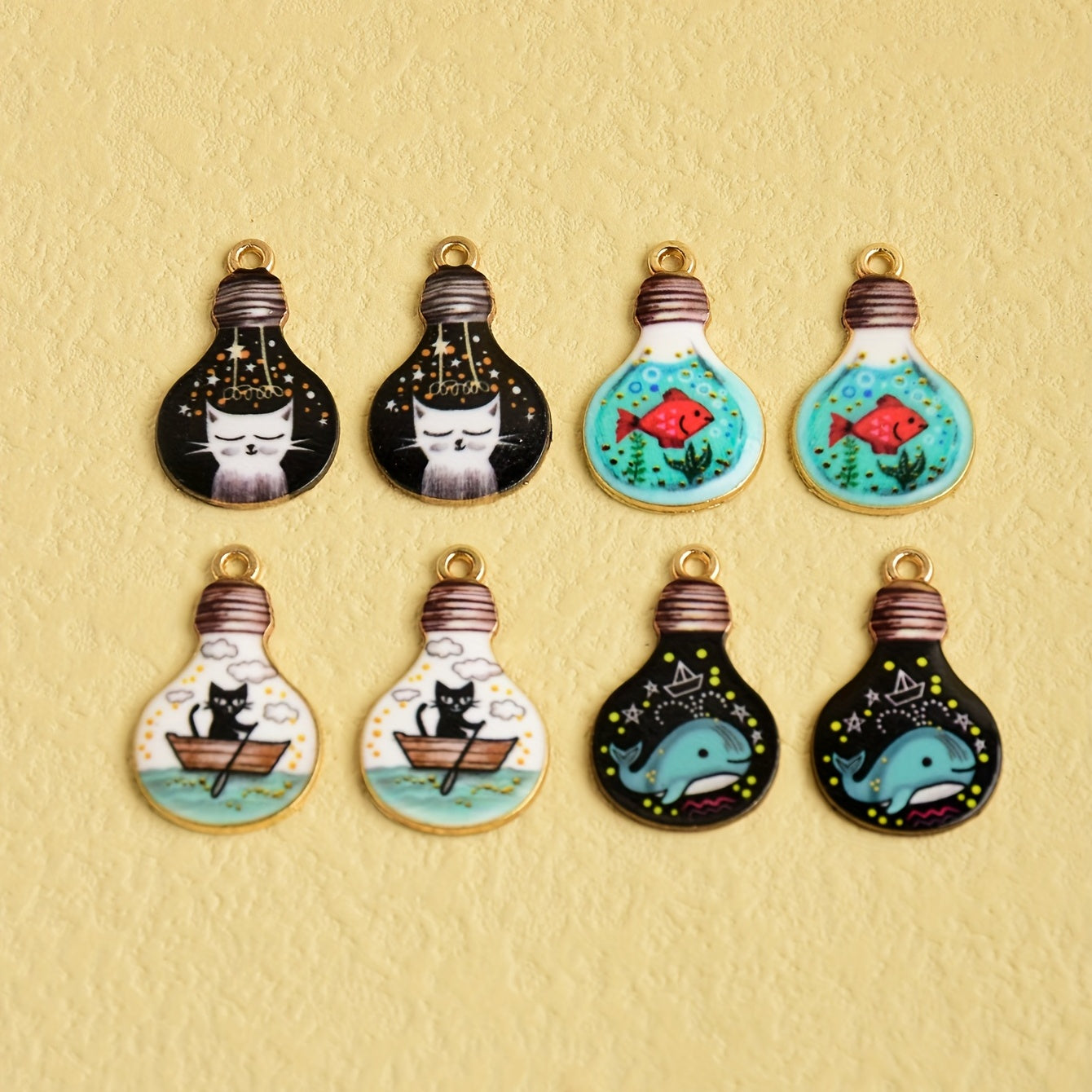 This pack includes 8 pieces of cute goldfish, dolphin, and kitten print bulb pendants for creating your own earrings, necklace, bracelet, or key chain pendant.