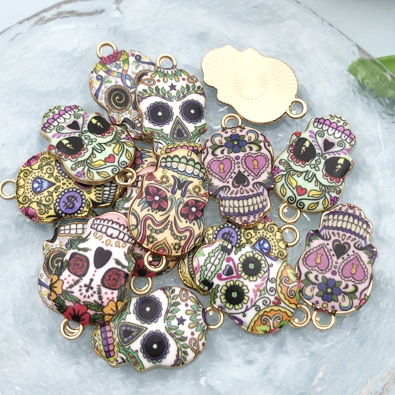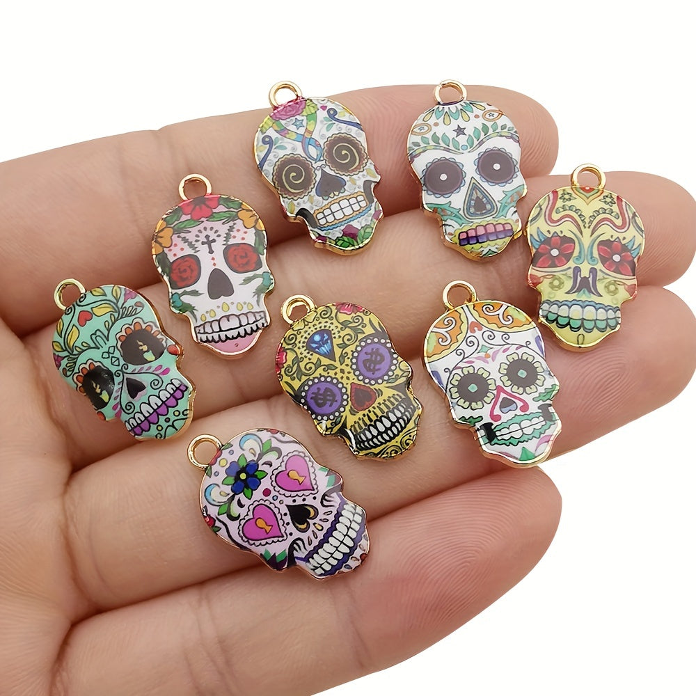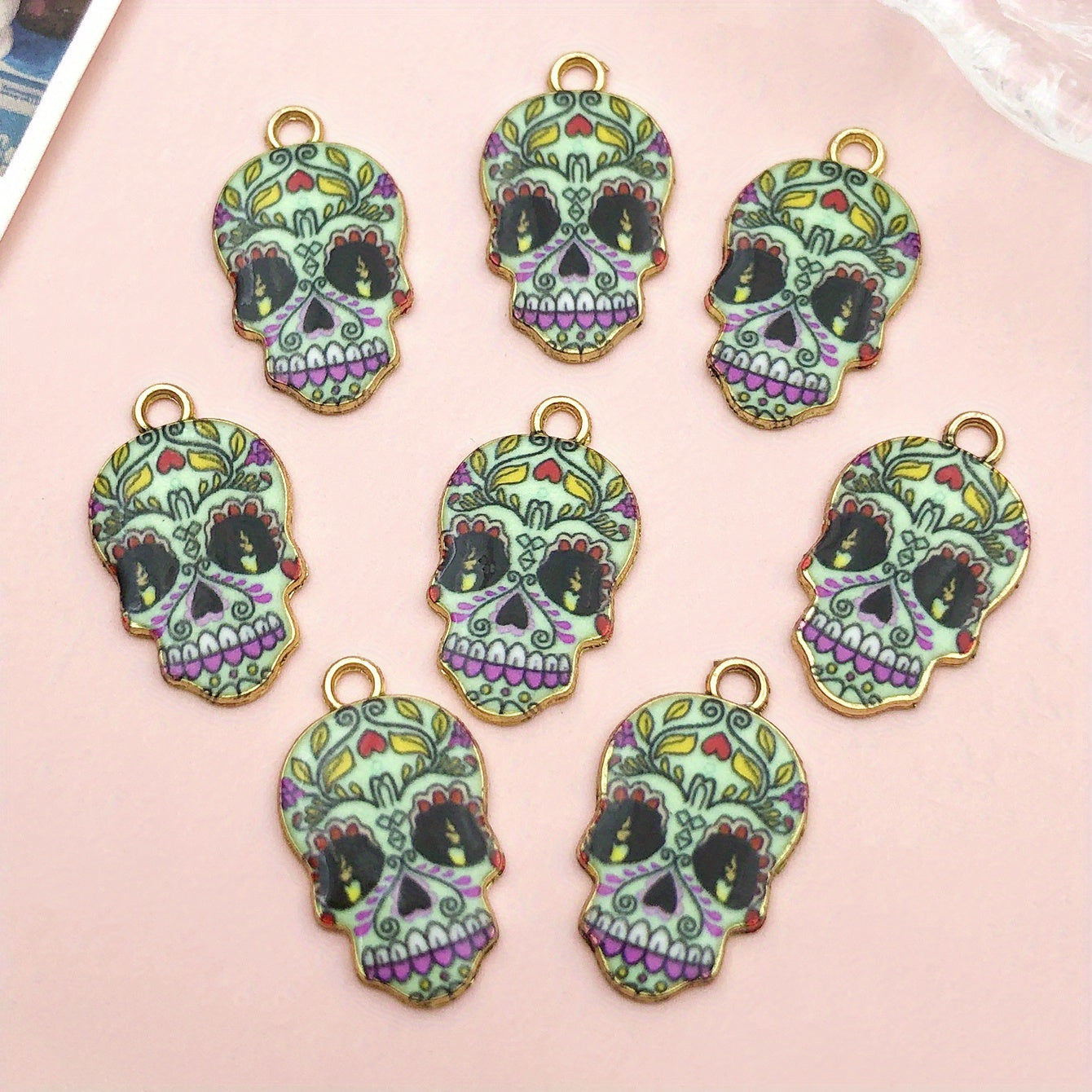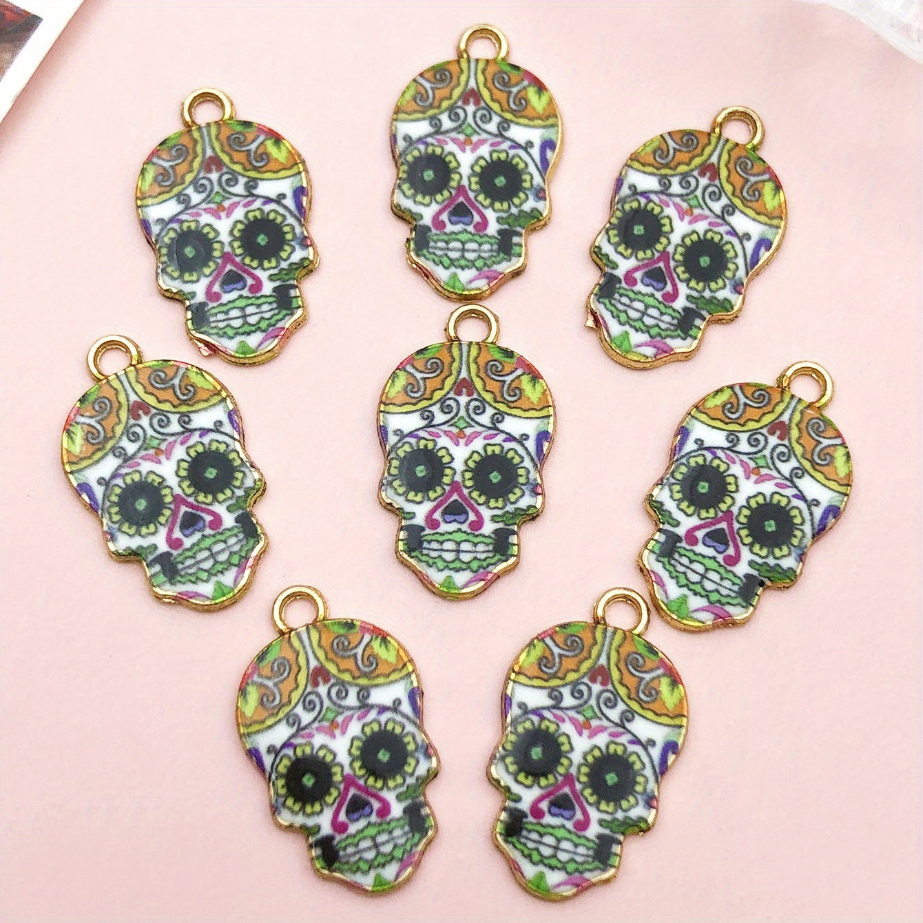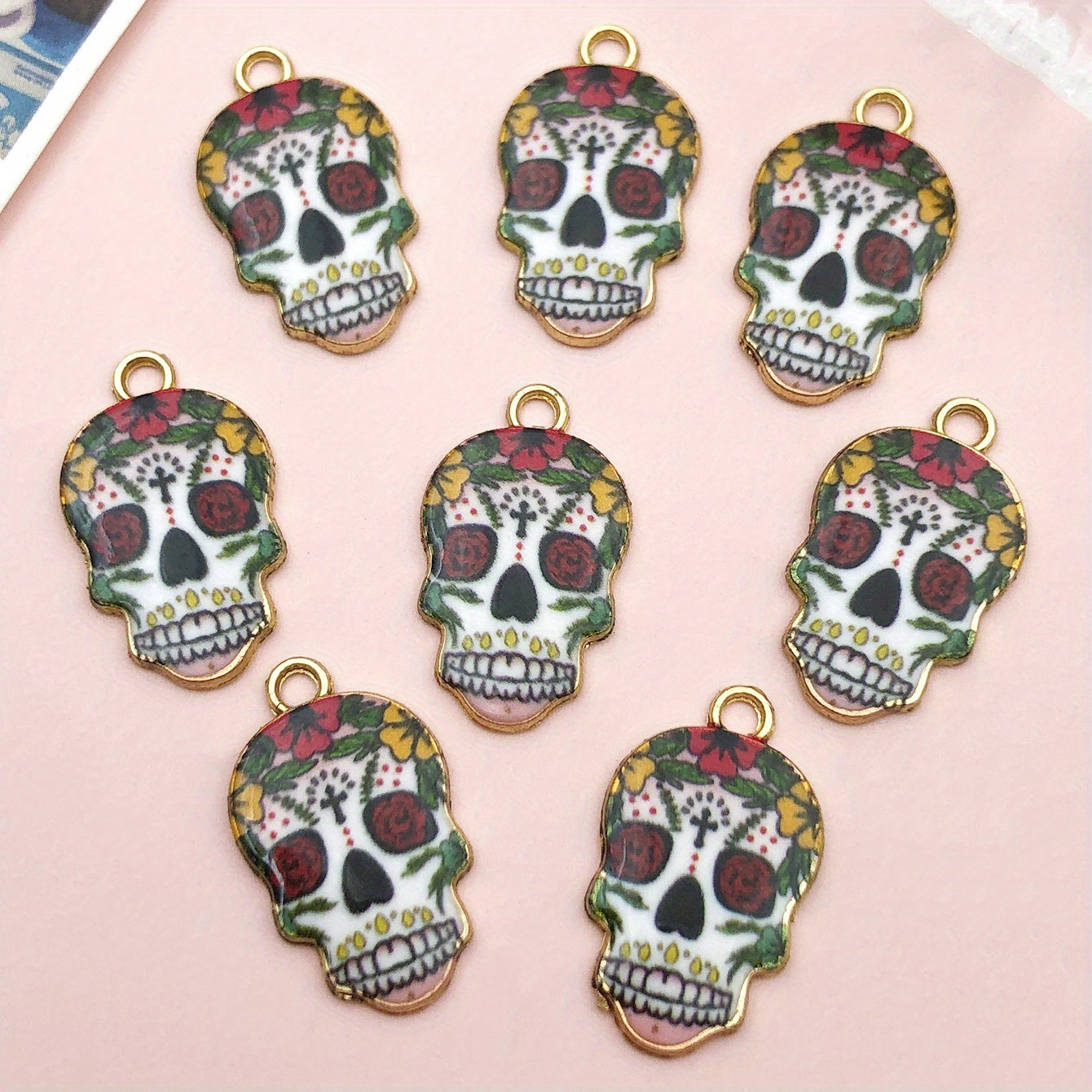 These 8pcs Halloween floral skull ornaments are perfect for creating unique jewelry pieces for the spooky season. Use them to make necklaces, bracelets, earrings, and more!