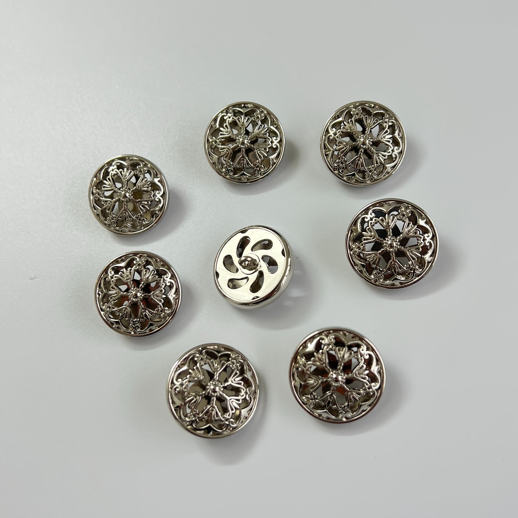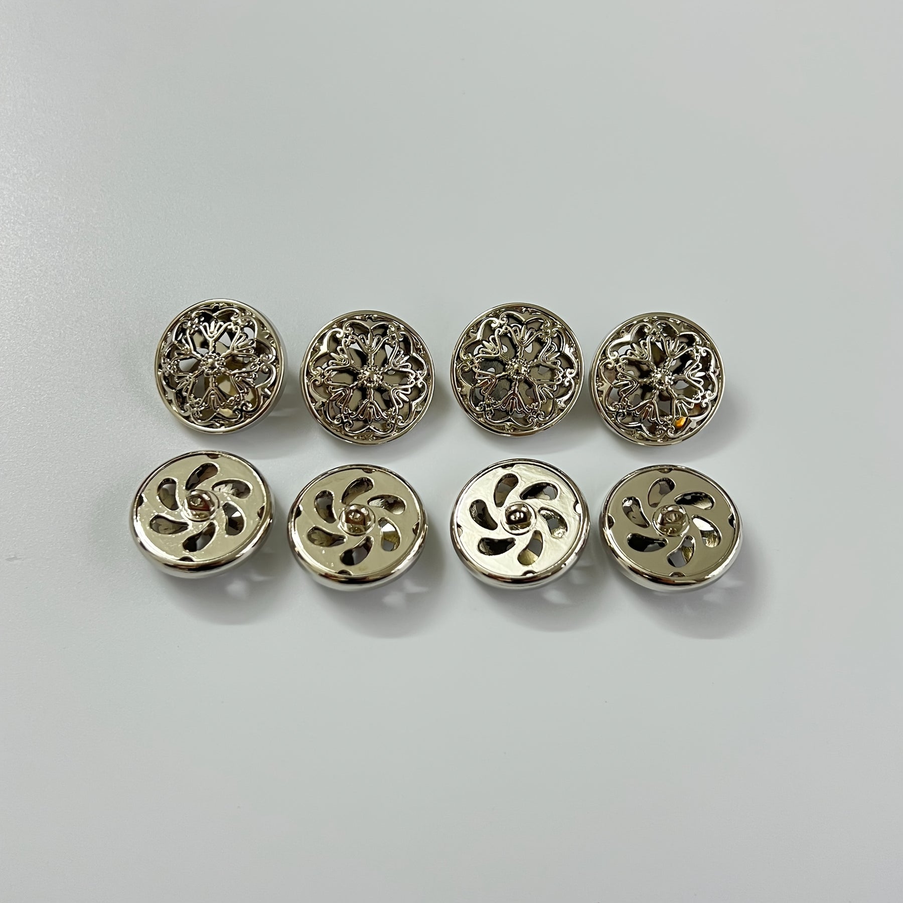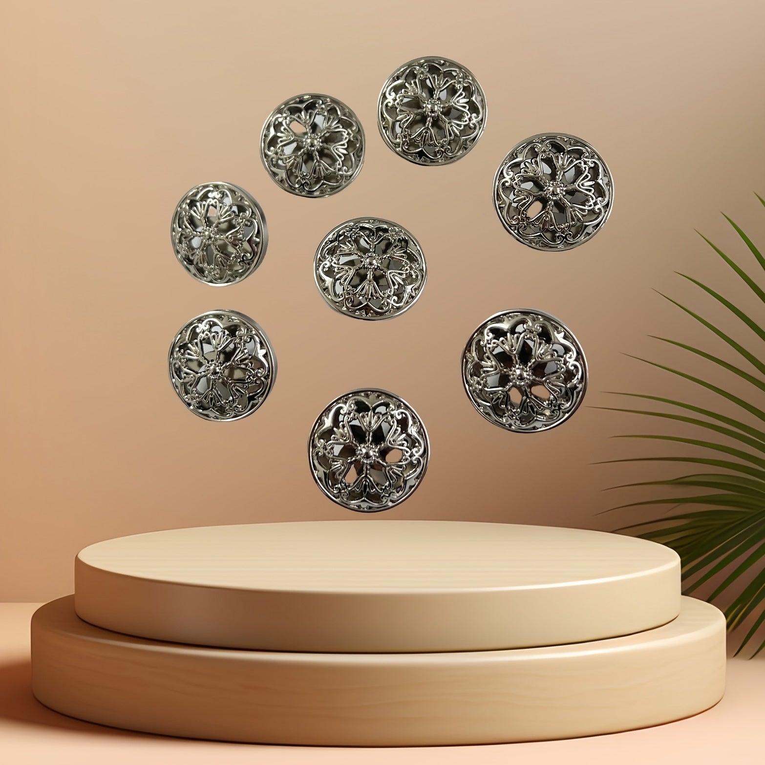 Add a touch of vintage charm to your clothing with this set of 8 metallic floral buttons. No power or electricity required, simply sew these beautiful buttons onto your garments for an elegant look.