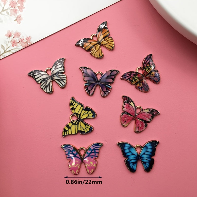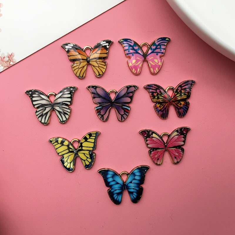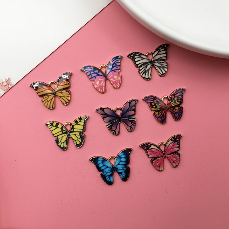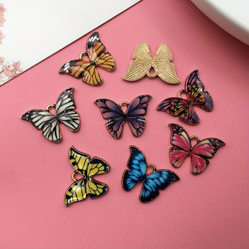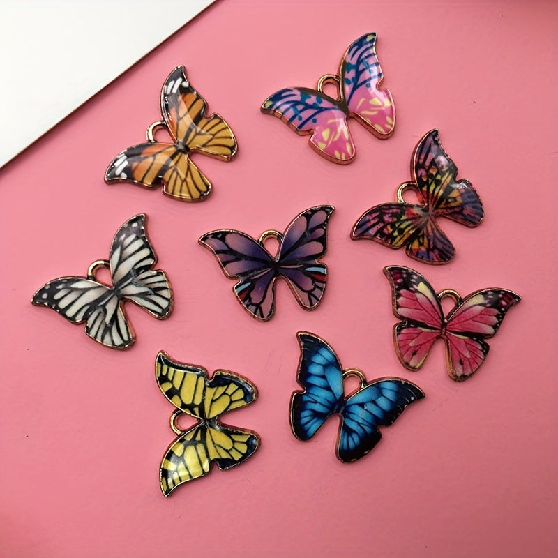 This set includes 8 charming butterfly charms in assorted colors. Perfect for crafting earrings, bracelets, and necklaces.