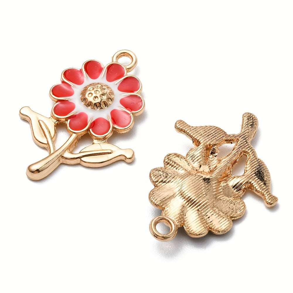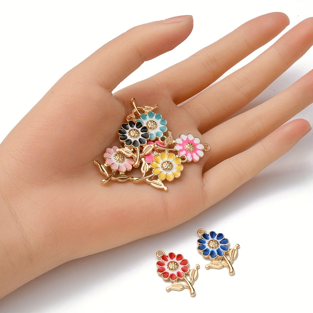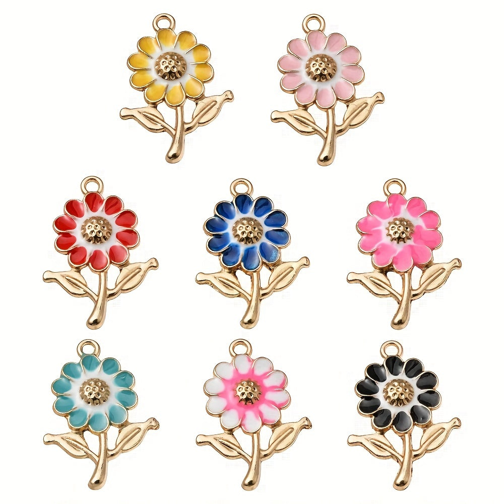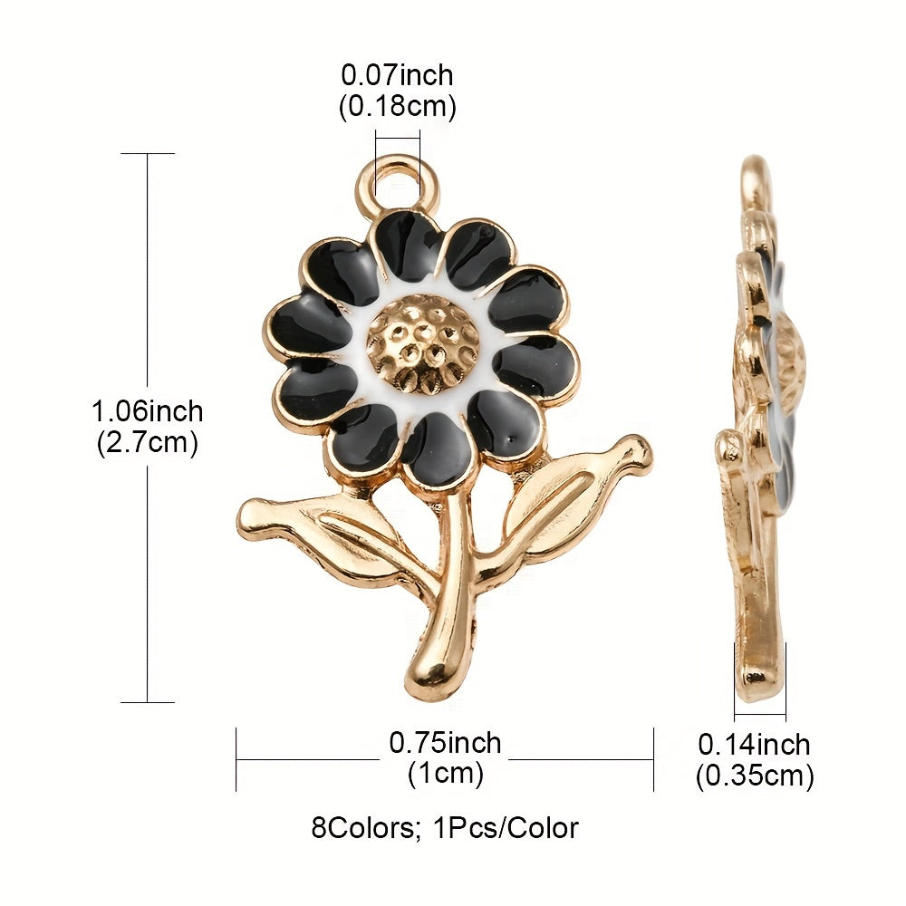 Enhance your jewelry making projects with this set of 8 alloy enamel sunflower pendants. Perfect for creating bracelets, necklaces, and other craft items.