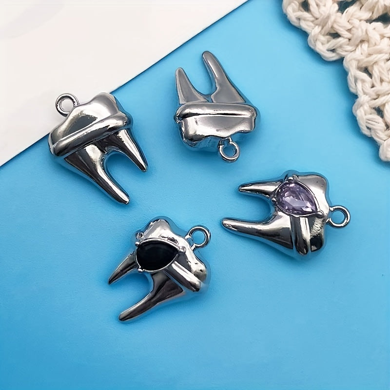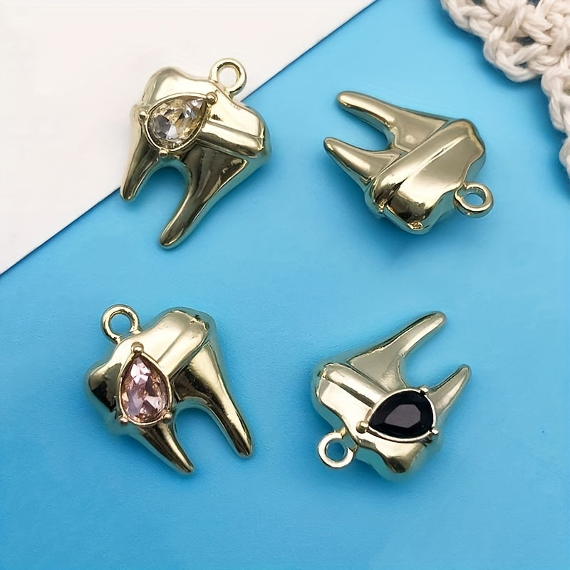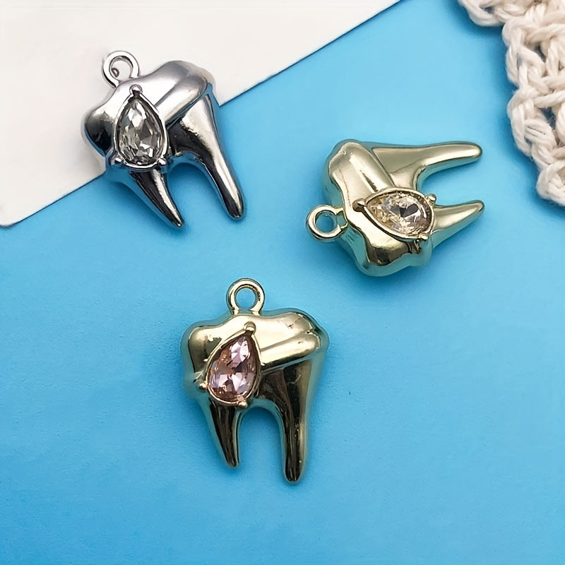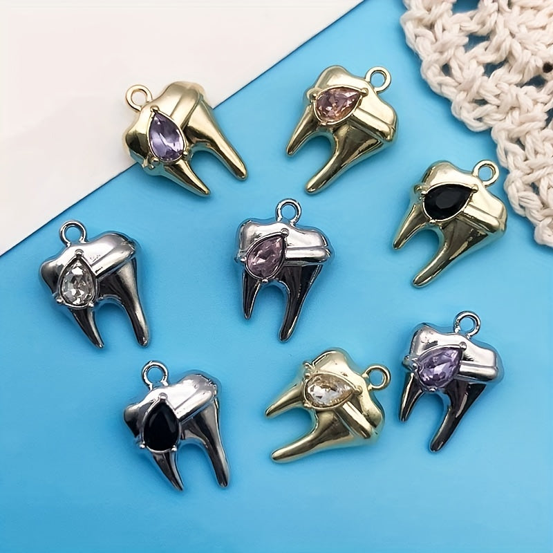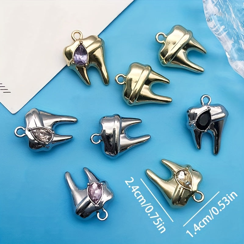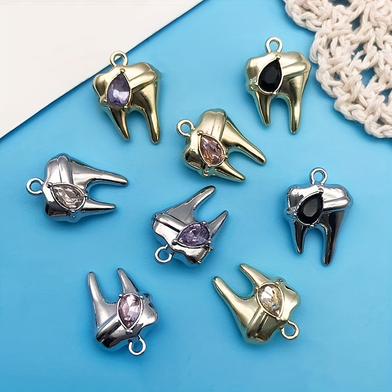 Get creative with this 8-piece pack of zinc alloy charms featuring rhinestone decorations in the shape of teeth. Perfect for crafting your own necklaces, bracelets, earrings, and more.