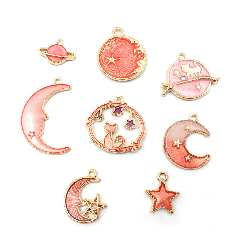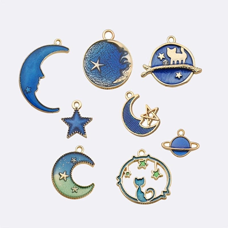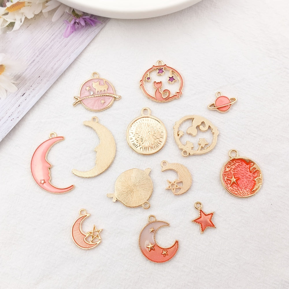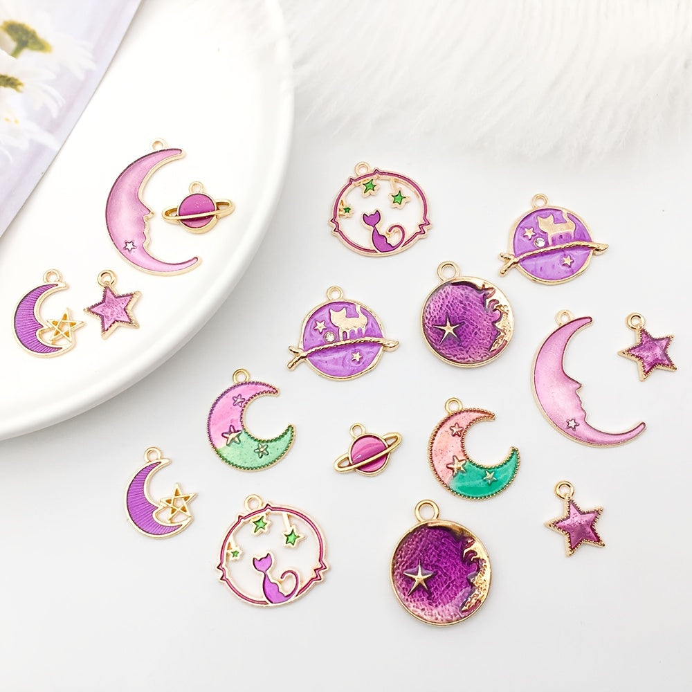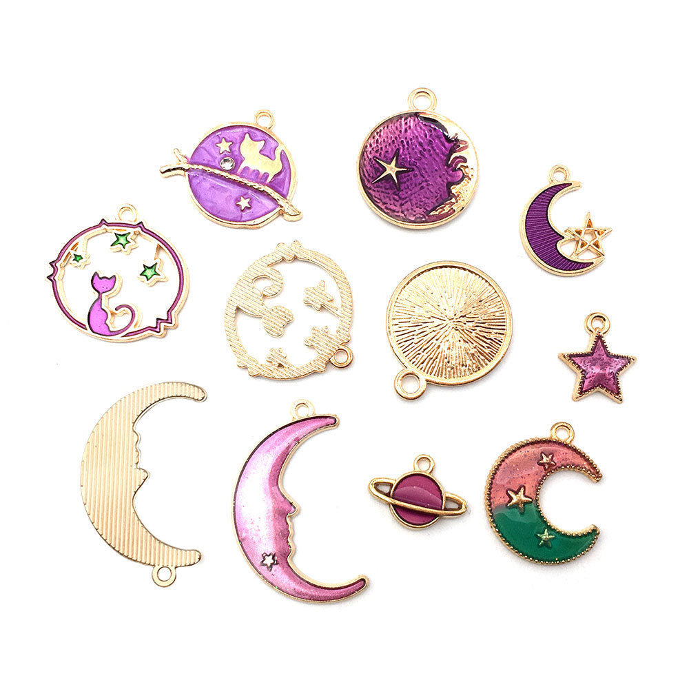 Enhance your jewelry creations with these colorful space-themed metal charms. Ideal for bracelets, earrings, and necklaces.