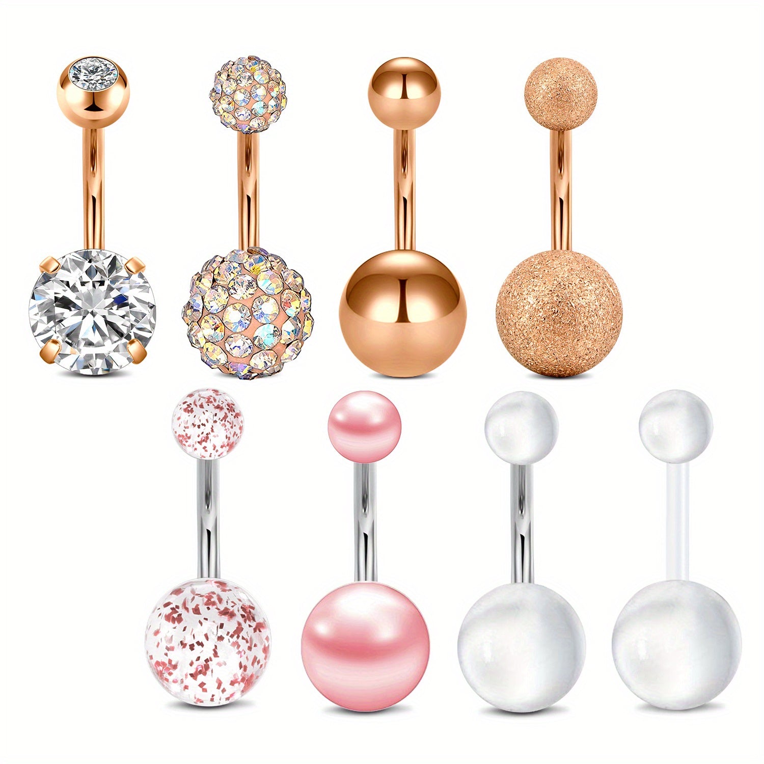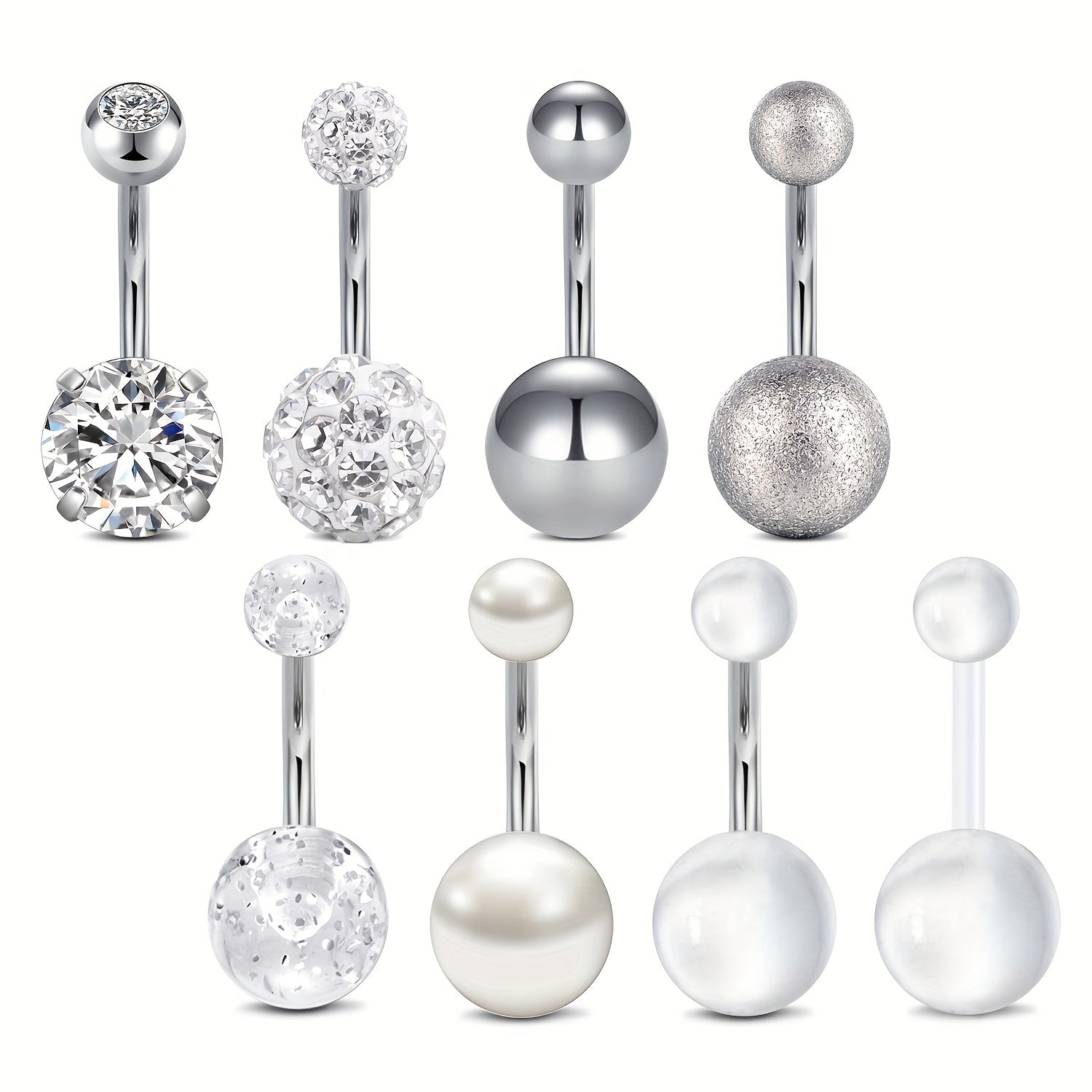 8Pcs Stainless Steel CZ Belly Button Rings 14G Navel Bar Piercing Jewelry