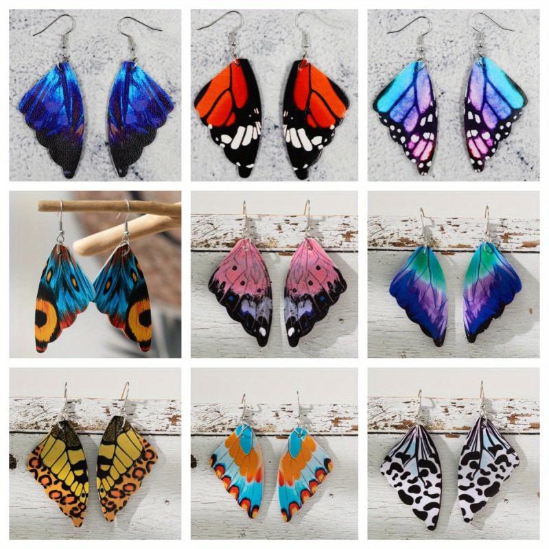 Add a pop of color and boho style to your look with this set of 9 pairs of colorful butterfly wing dangle earrings. Made of PU leather, these earrings are a great gift idea for women.