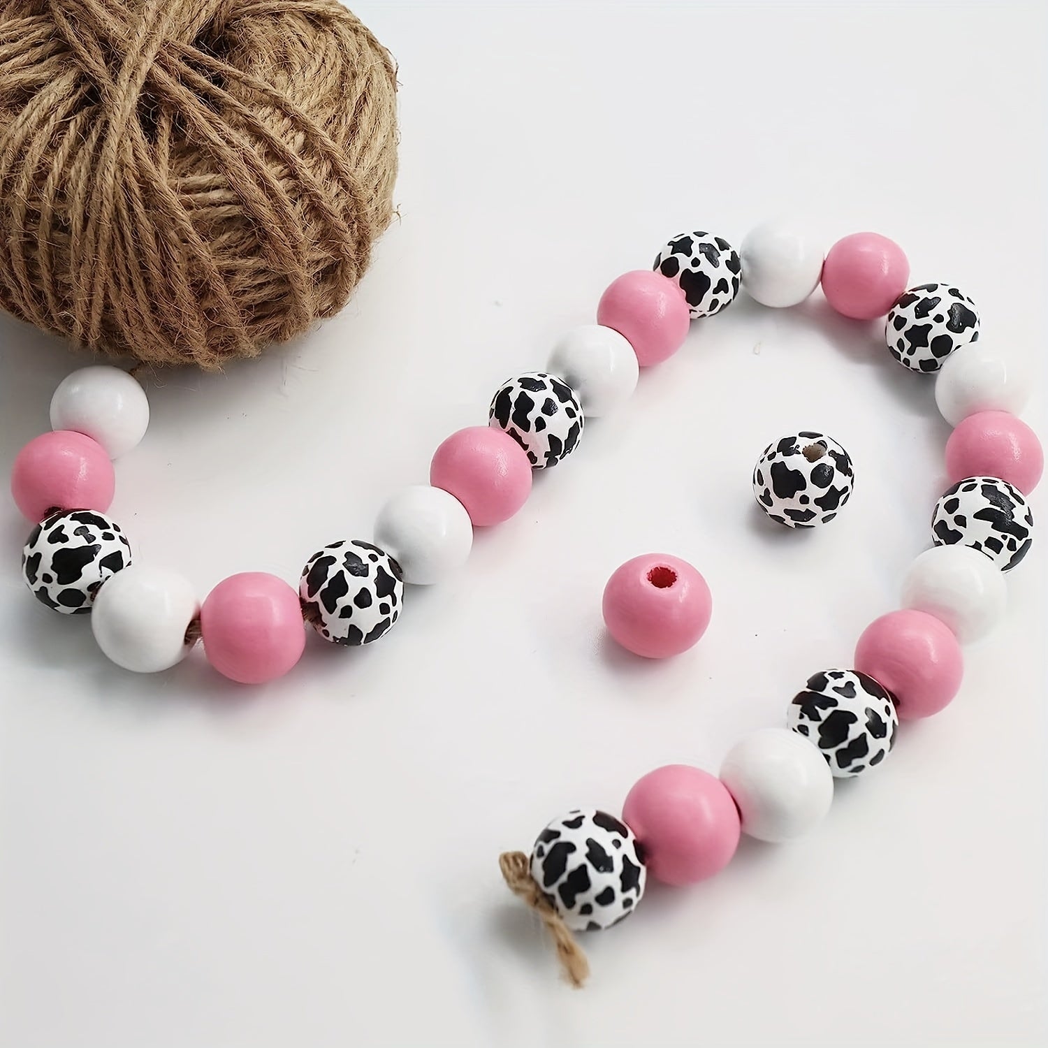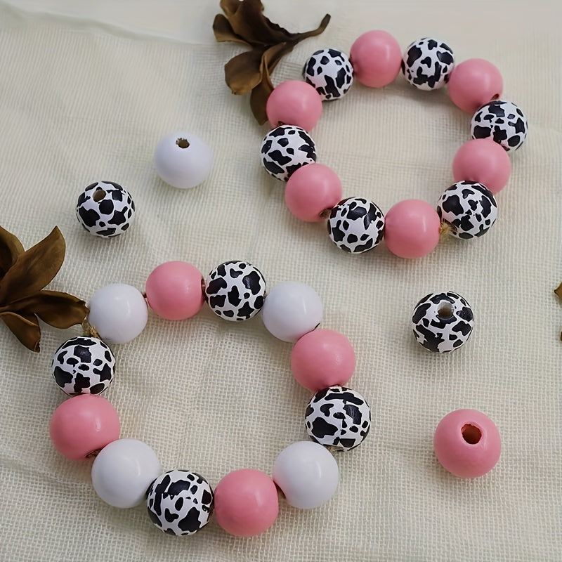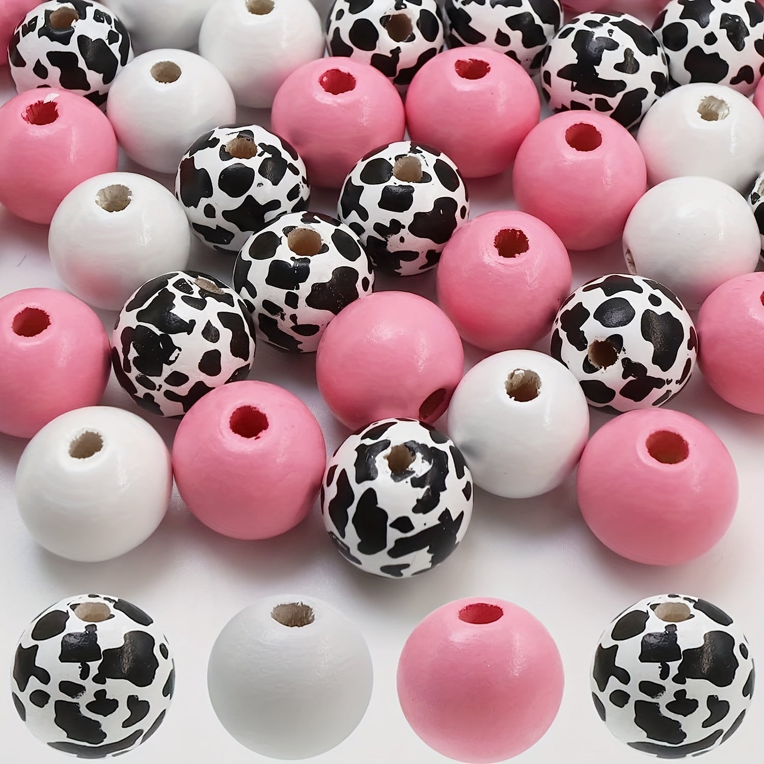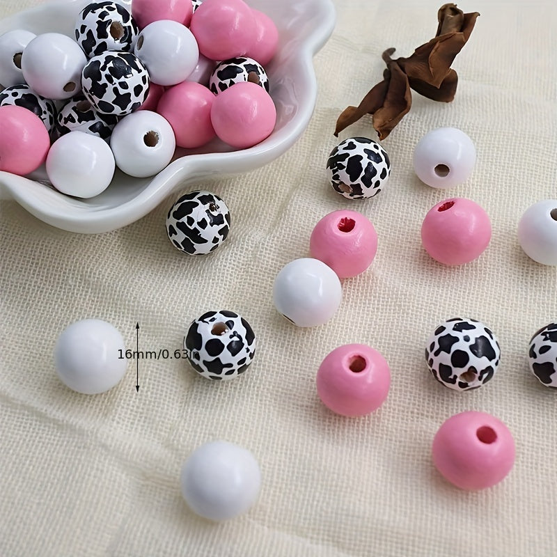 Get creative with these 16mm pink cow print round wooden beads for making earrings, bracelets, necklaces, and more. Perfect for any DIY jewelry project.