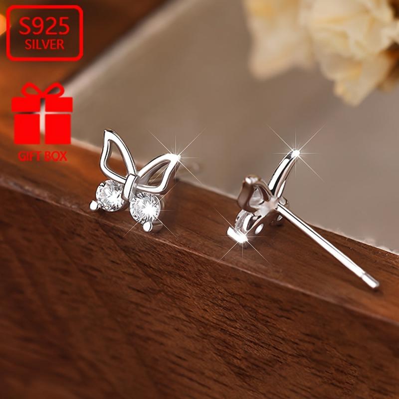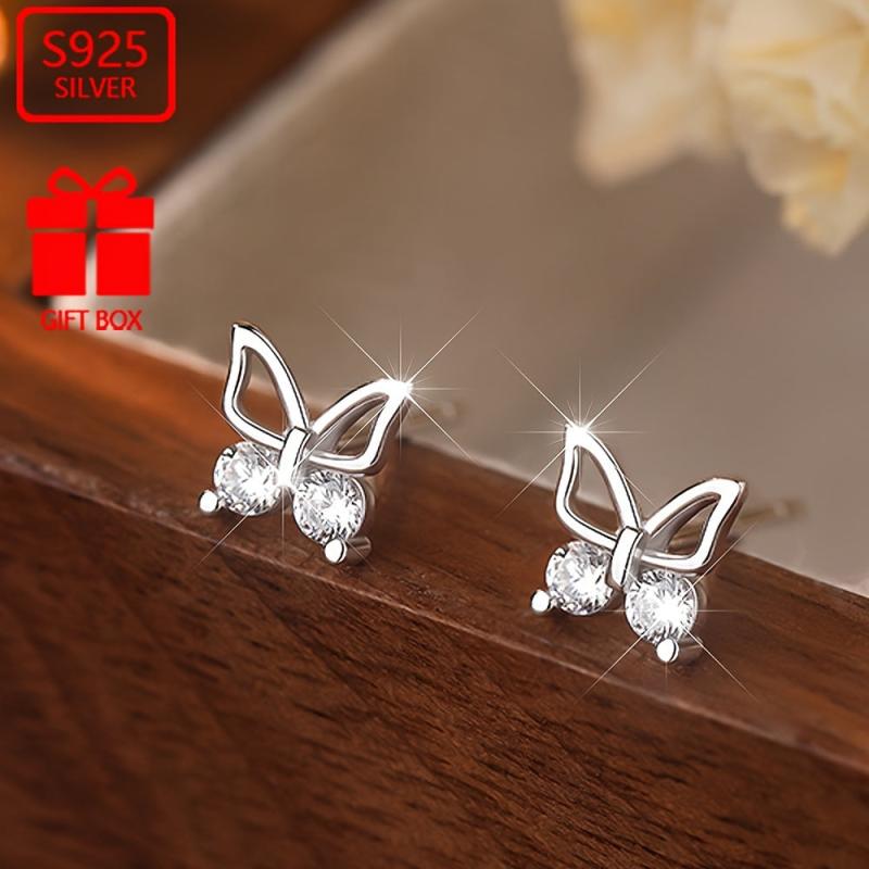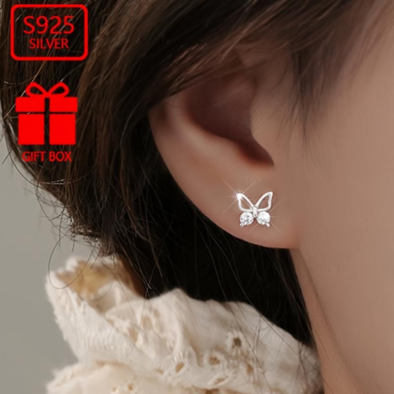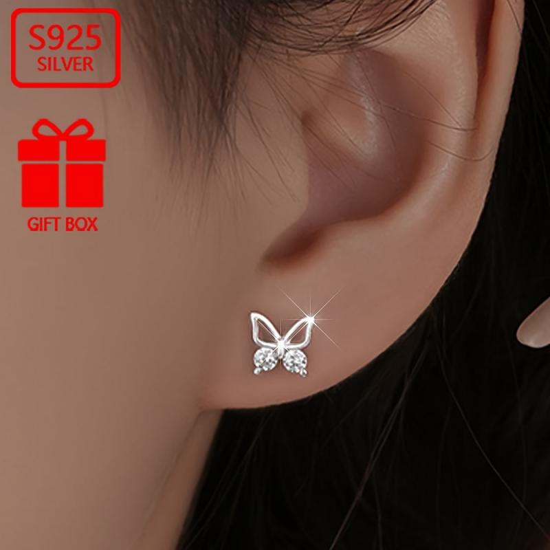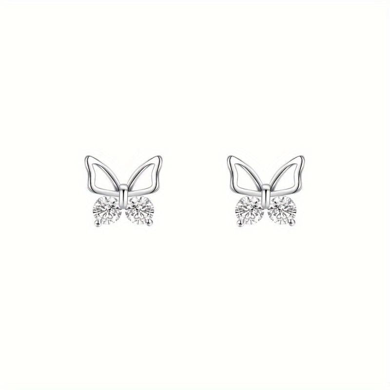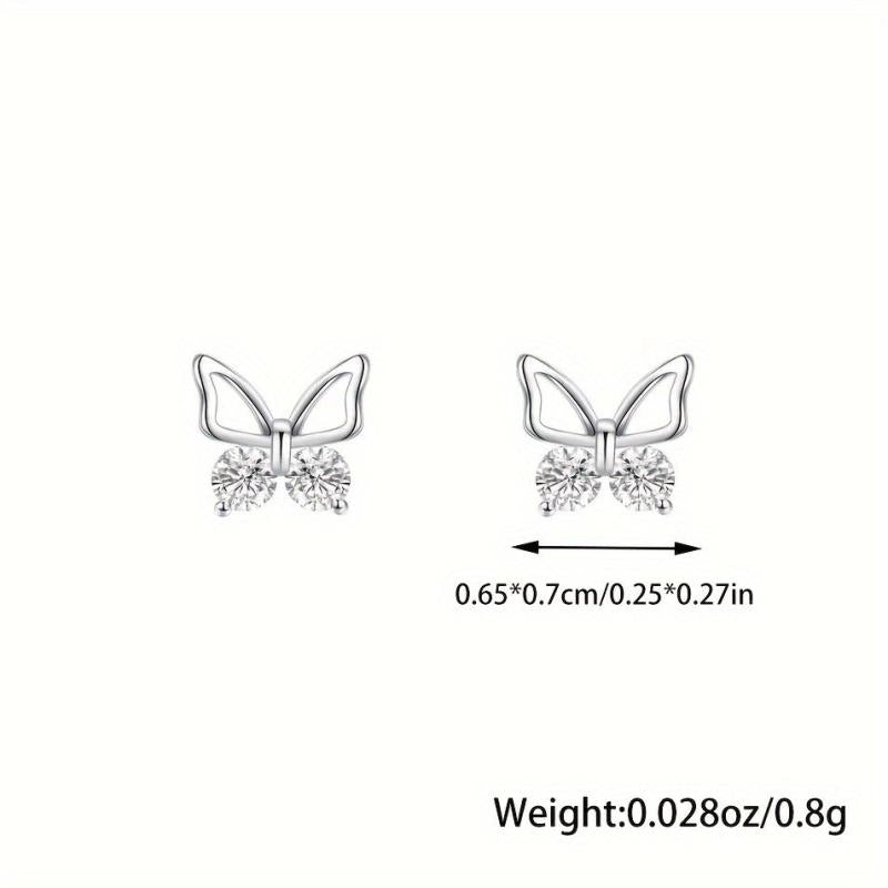 Elegant and versatile 925 pure silver earrings with hollow butterfly design and synthetic zirconia. Perfect for everyday wear or special occasions.