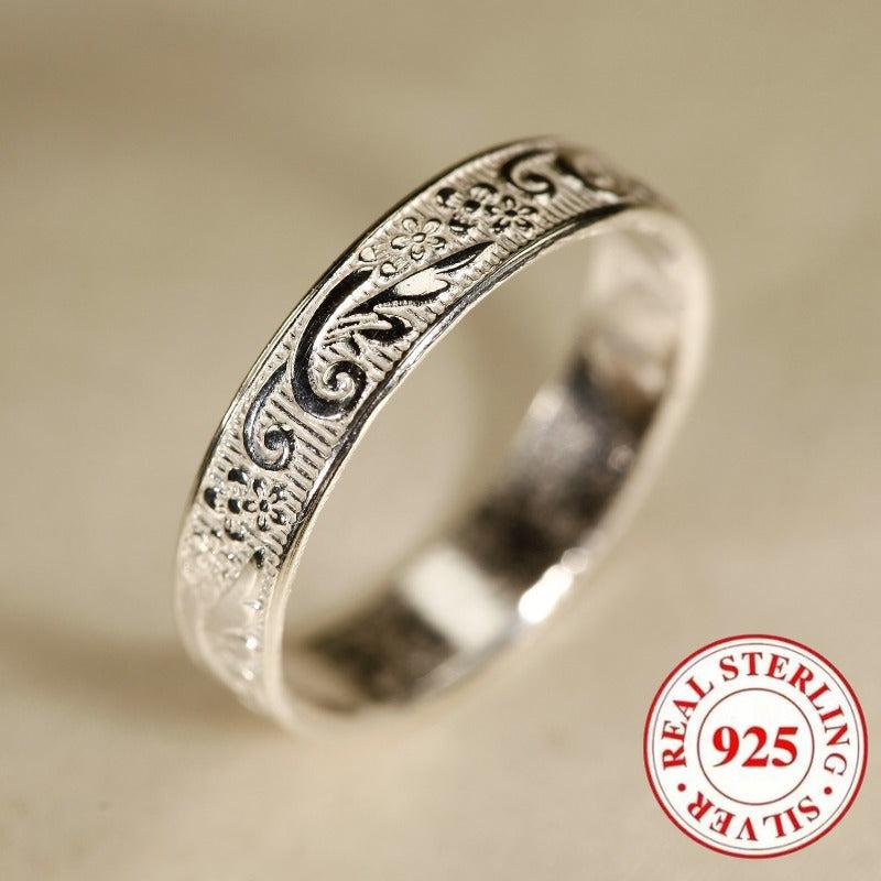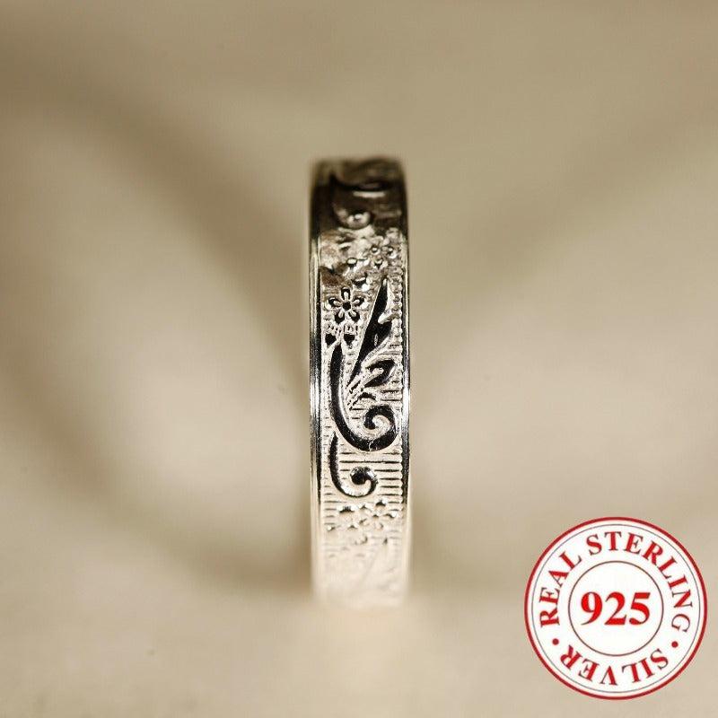 Elegant wide face ring made of 925 pure silver with retro engraved pattern, perfect for daily wear, parties, and banquets. Ideal as a jewelry gift.