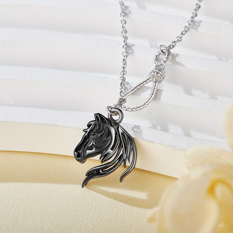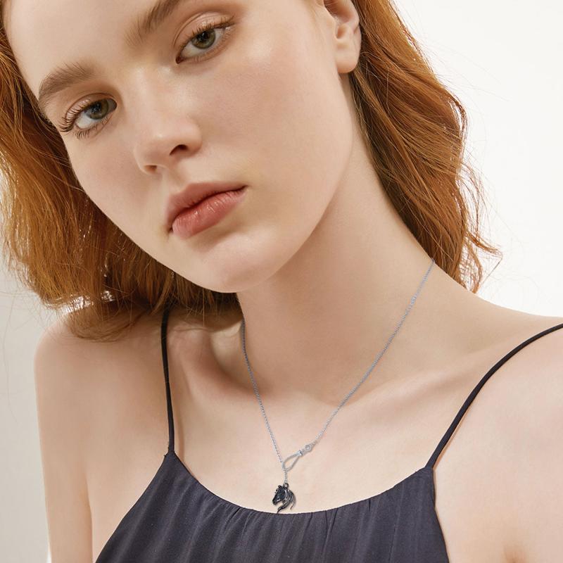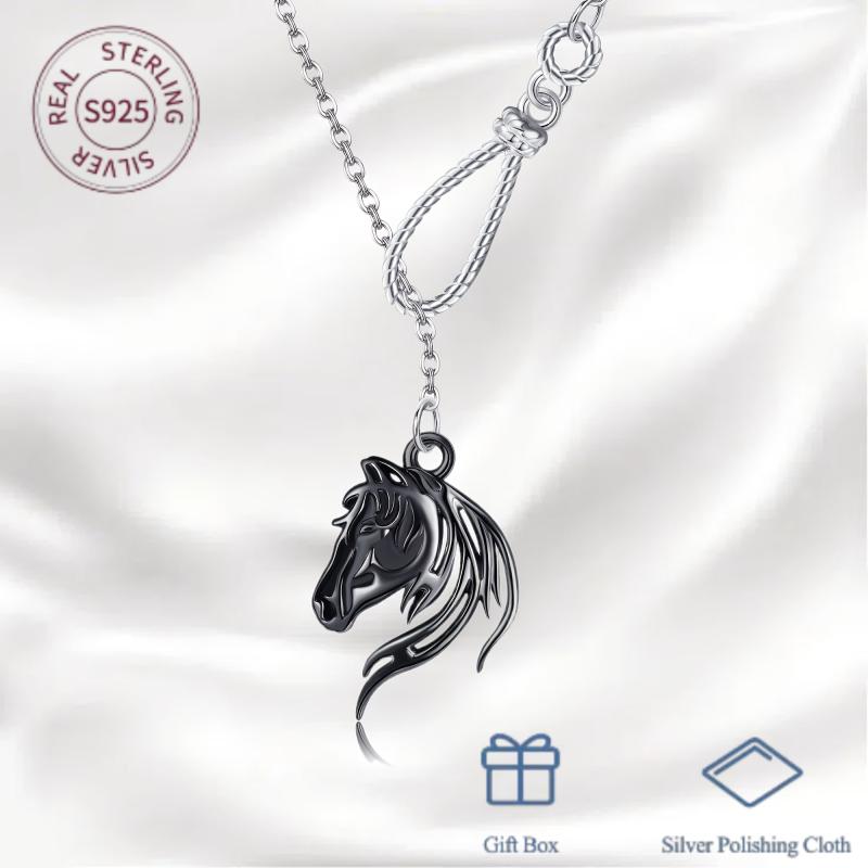 Exquisite 925 pure silvery horse pendant necklace, perfect gift for female horse lovers and mothers. The Y shape design adds a stylish touch to any outfit.