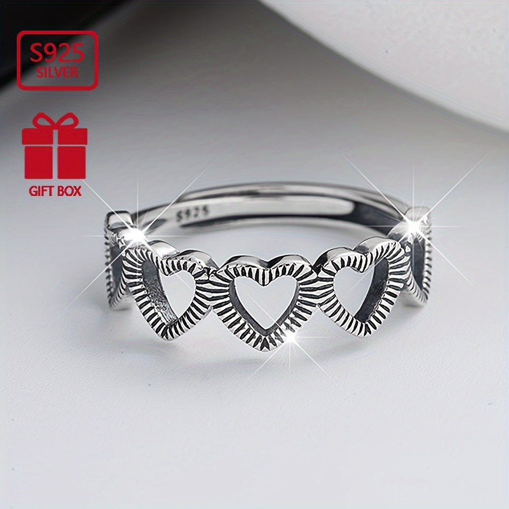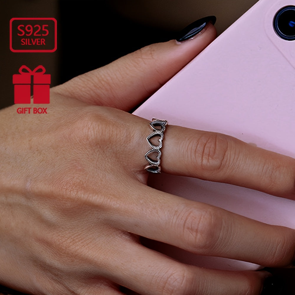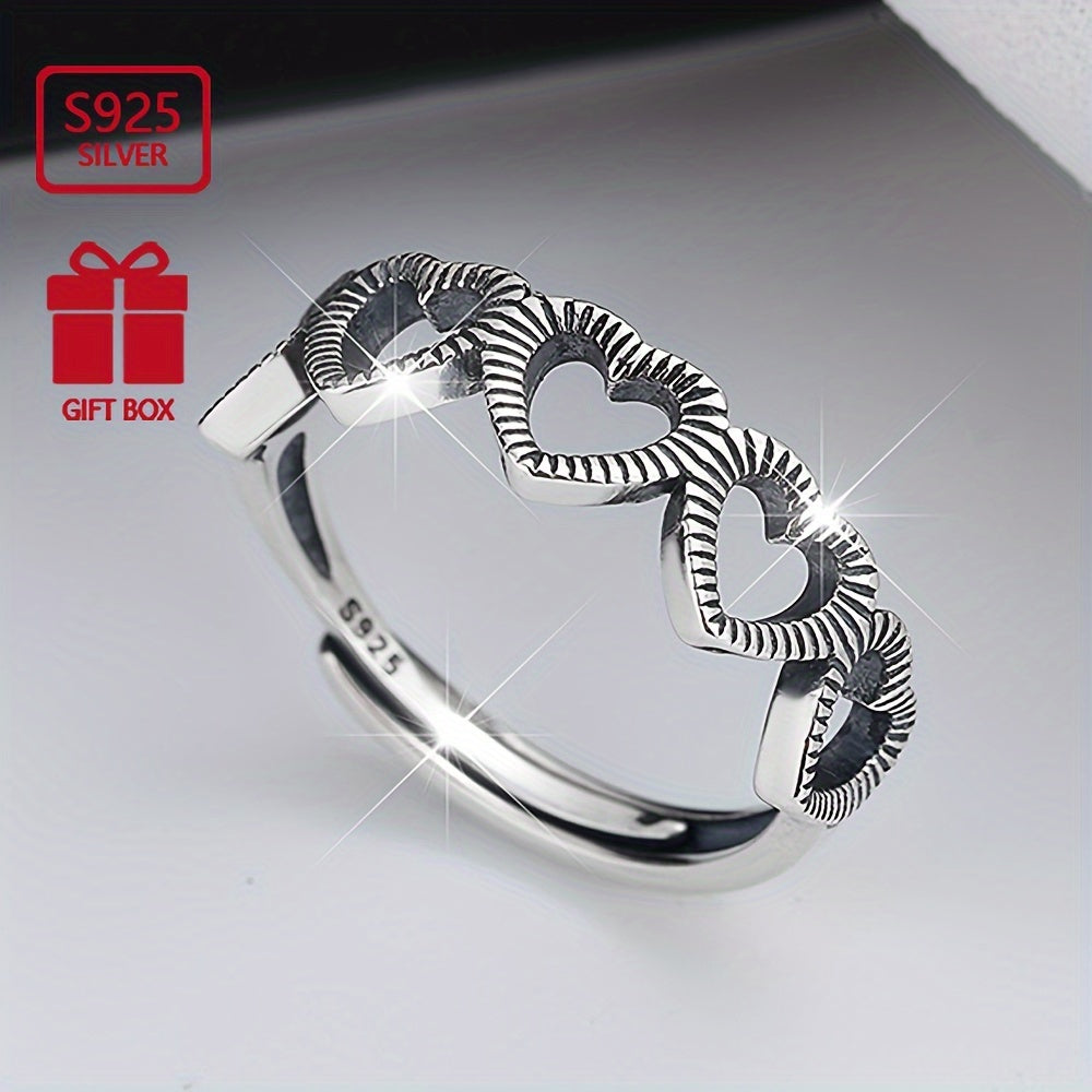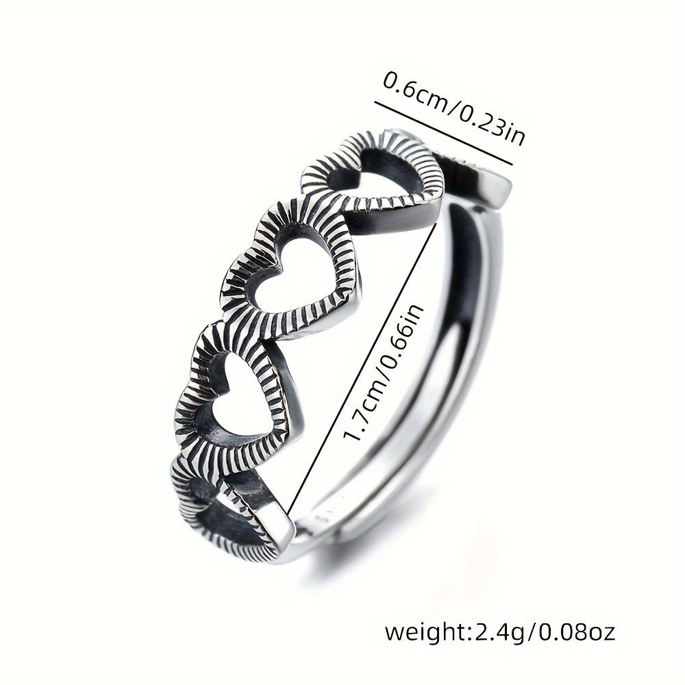 This silvery ring features a retro design with a hollow heart open adjustable style. Perfect for daily commuting wear, this ring is a must-have hand accessory.
