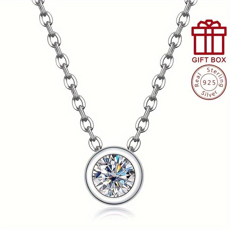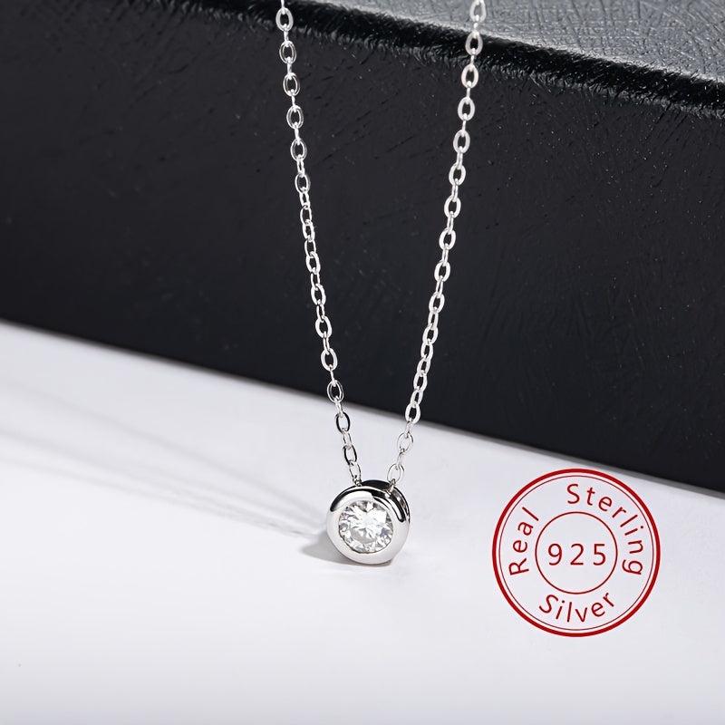 Elegant and minimalist collar pendant necklace made of 925 silver with a 0.3ct moissanite stone. Lightweight design suitable for everyday wear or special occasions.