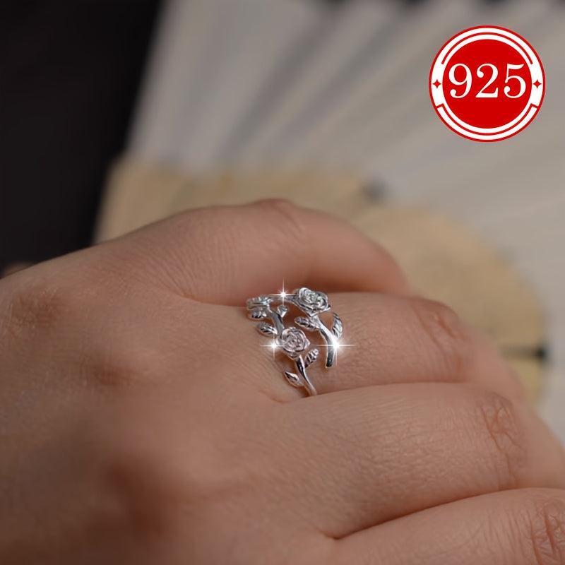 This 925 silver ring features a beautiful rose flower design, perfect for gifting to couples, friends, or for everyday wear. It is hypoallergenic and adjustable.