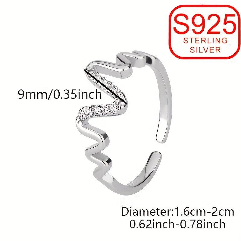 This sterling silver open ring features a wave irregular curve design, perfect for daily wear, weddings, or beach outings. Hypoallergenic and minimalist, it adds a touch of elegance to any outfit.