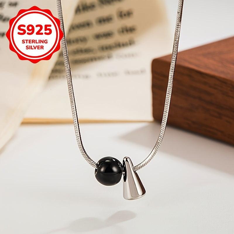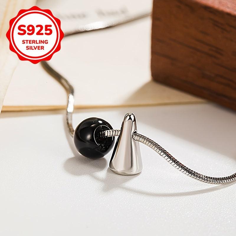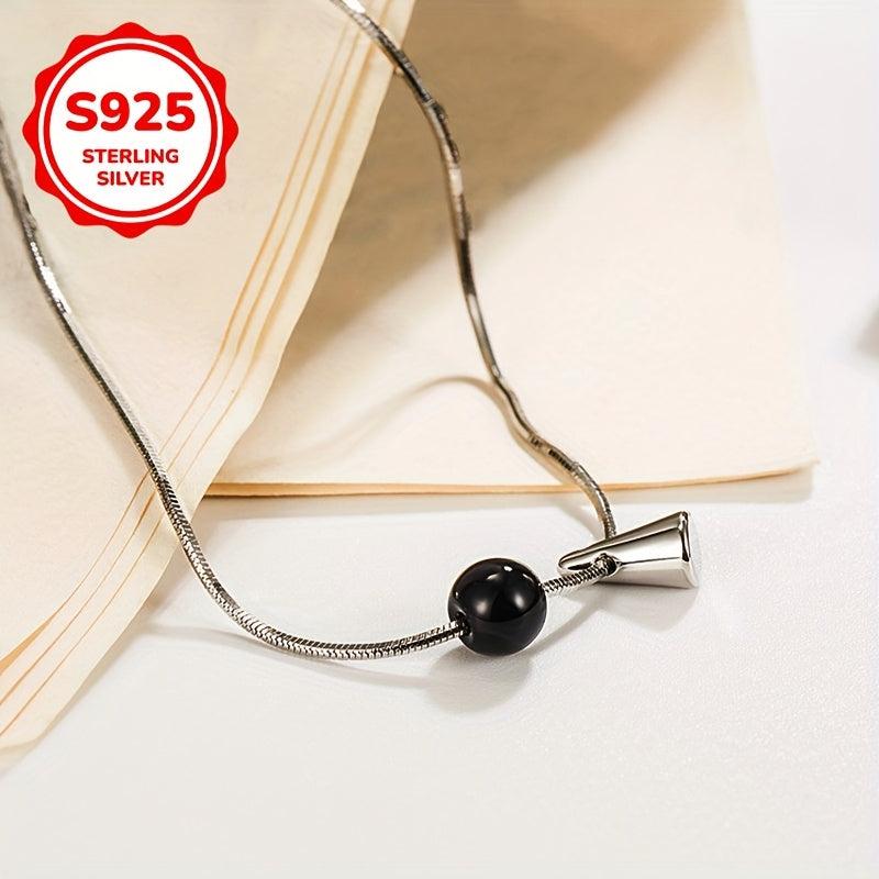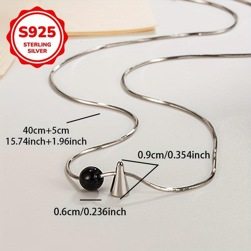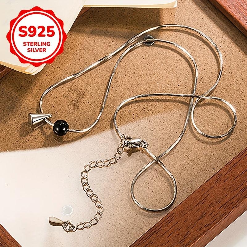 This stunning necklace is made of 925 sterling silver with an agate and snake bone pendant. It is low allergy and perfect for couples, friends, and special occasions.