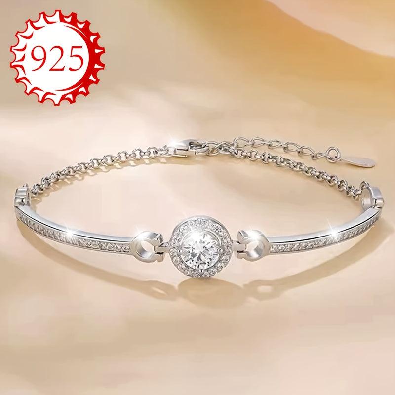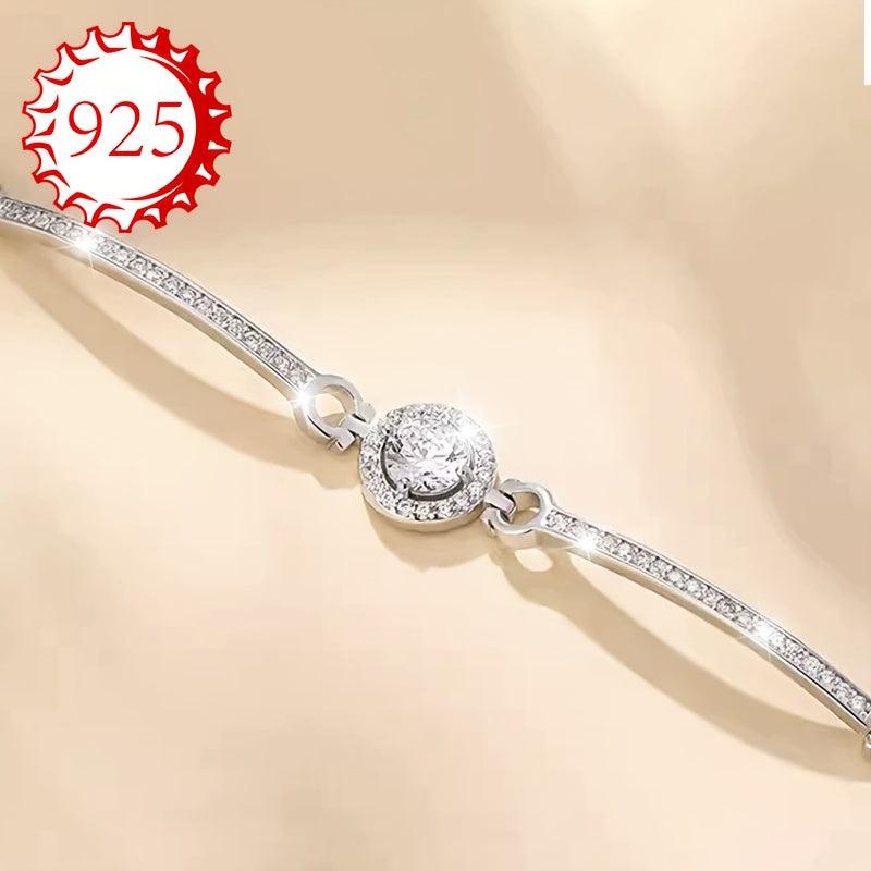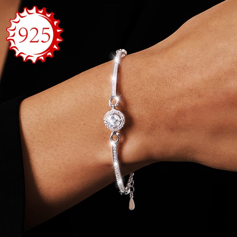 Elegantly crafted 925 silver bracelet perfect for those with allergies, featuring a small sun round bag design. Add a touch of style to your look.