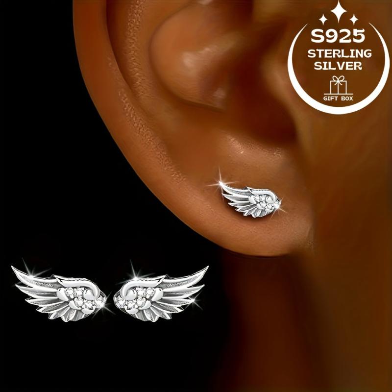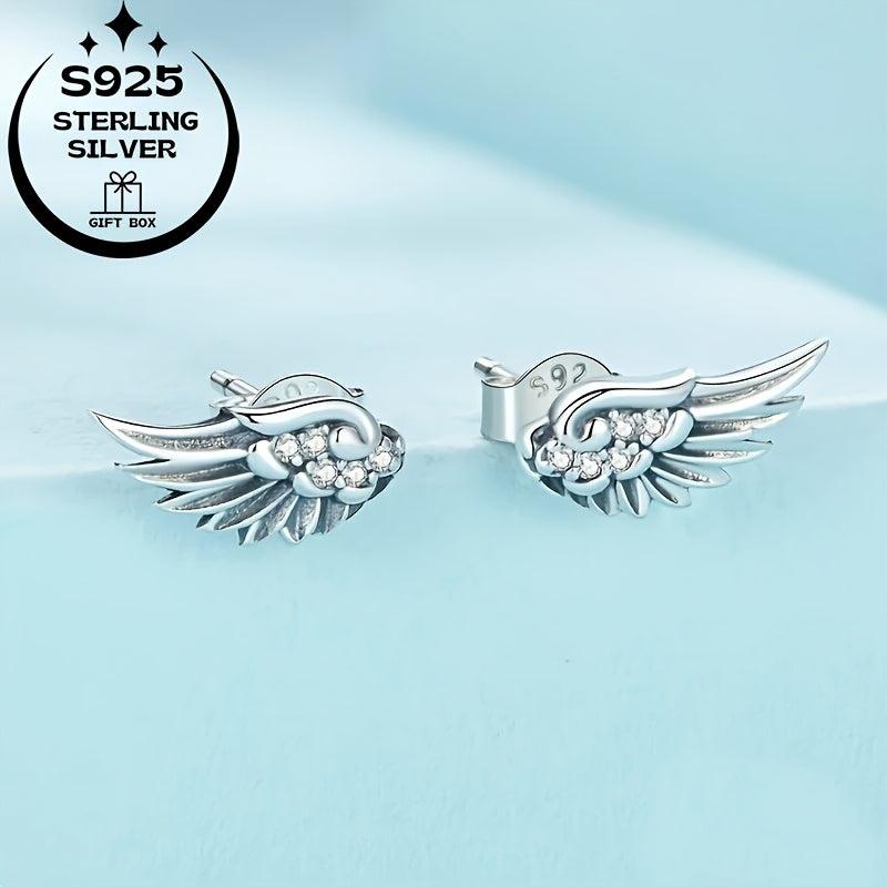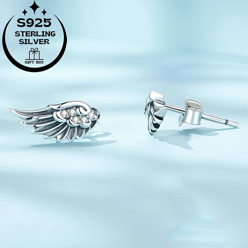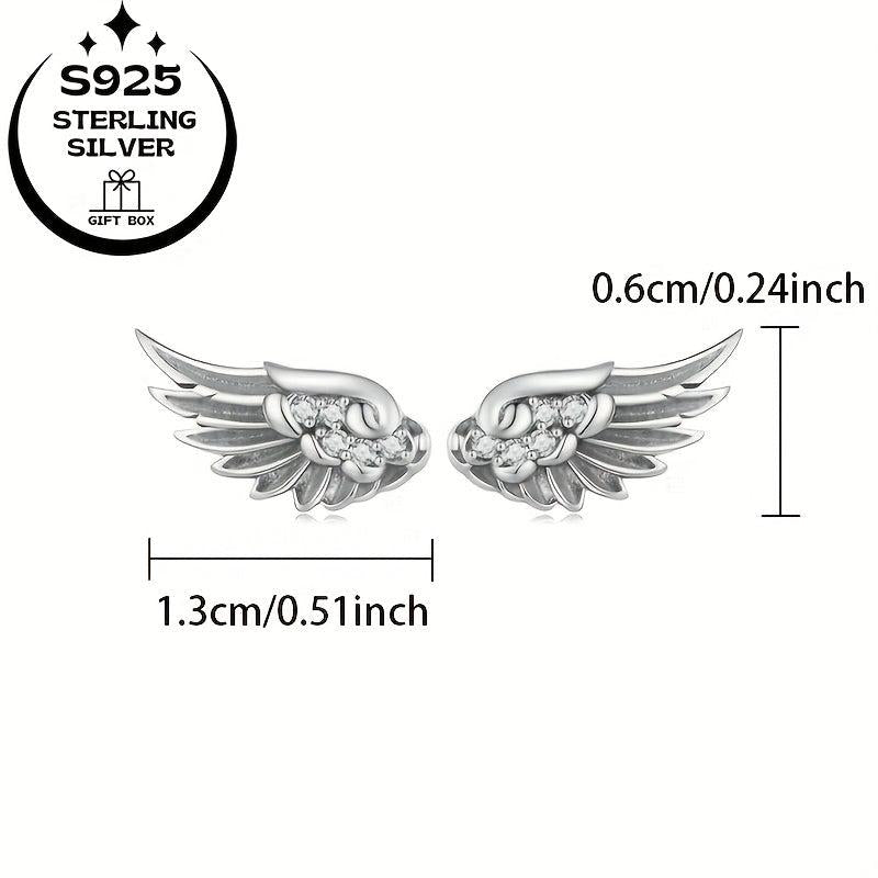 These fashionable women's earrings feature angel wings crafted from 925 silver and inlaid with synthetic zirconia. Perfect for anniversaries and birthdays.