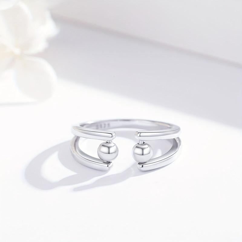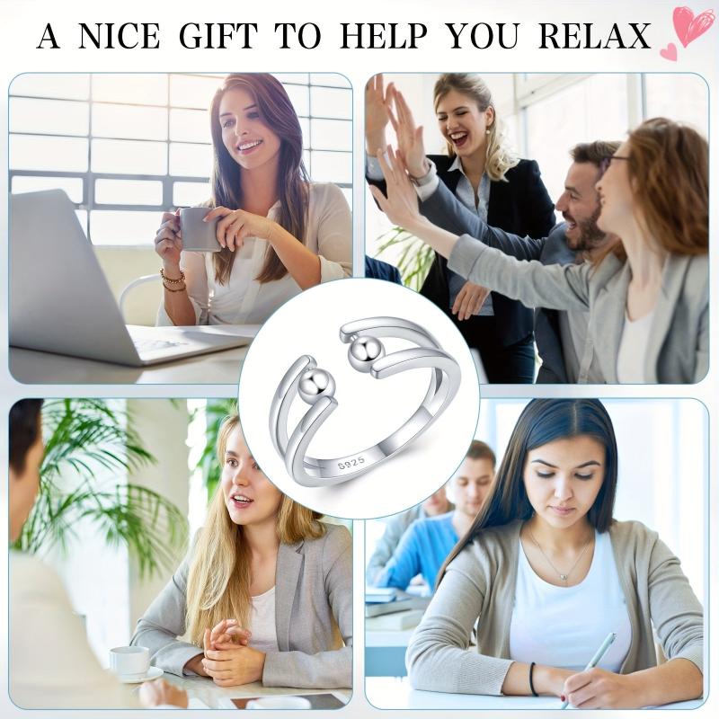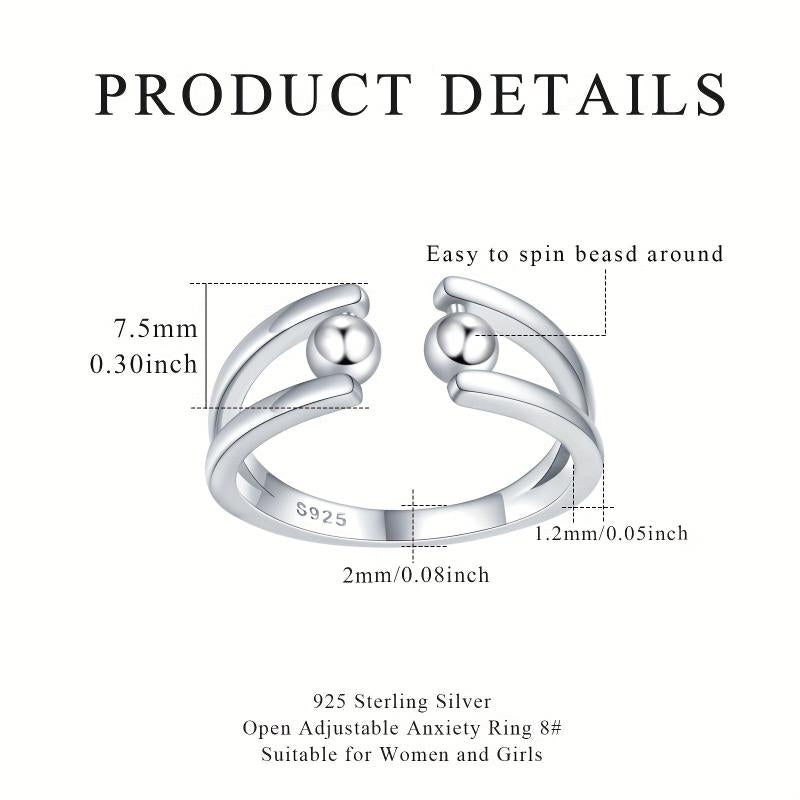 This elegant 925 sterling silver ring is designed for women to help reduce anxiety. It features a unique spiral beads design perfect for daily wear and as a fidget ring.