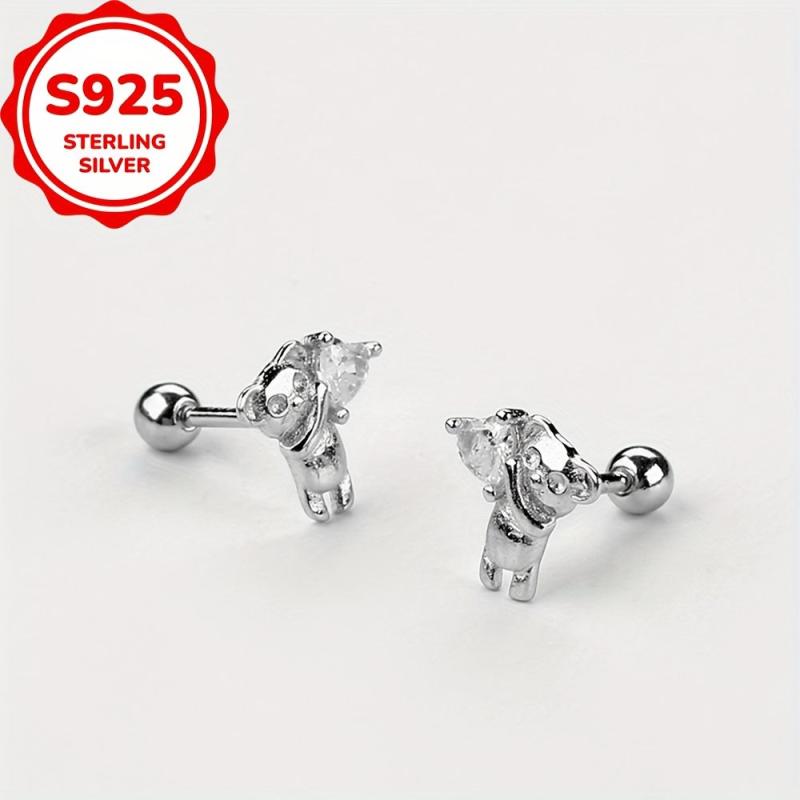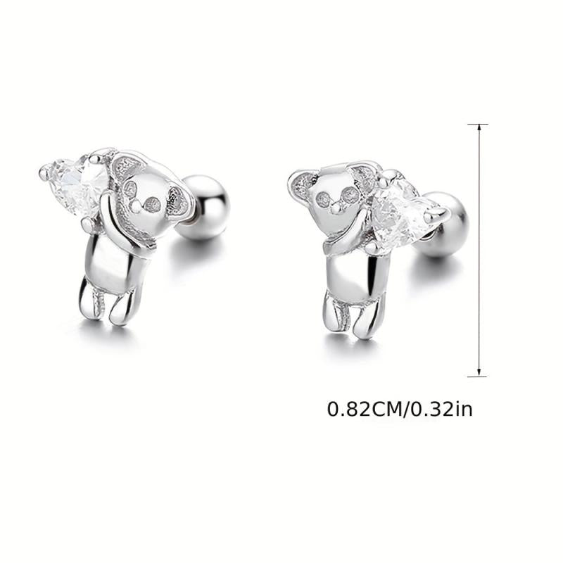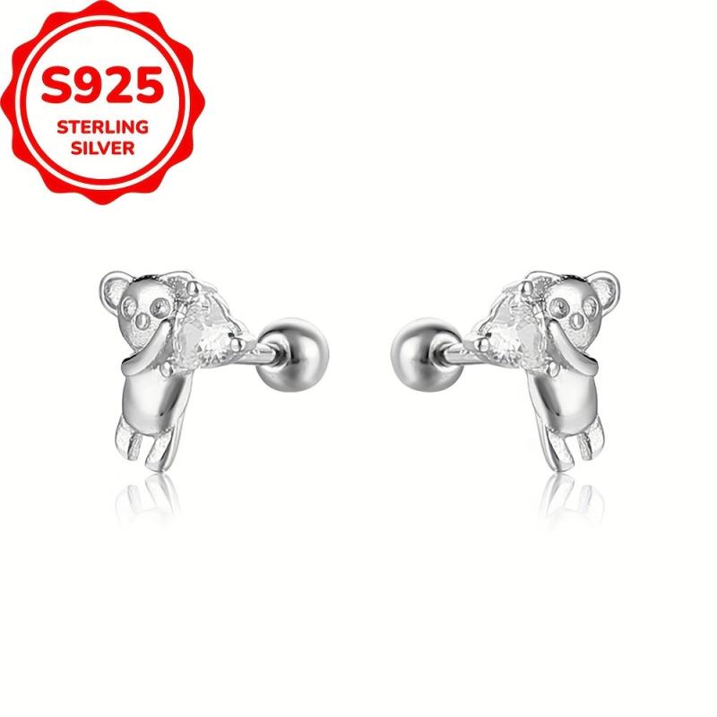 • 925 sterling silver bear hugs heart earrings