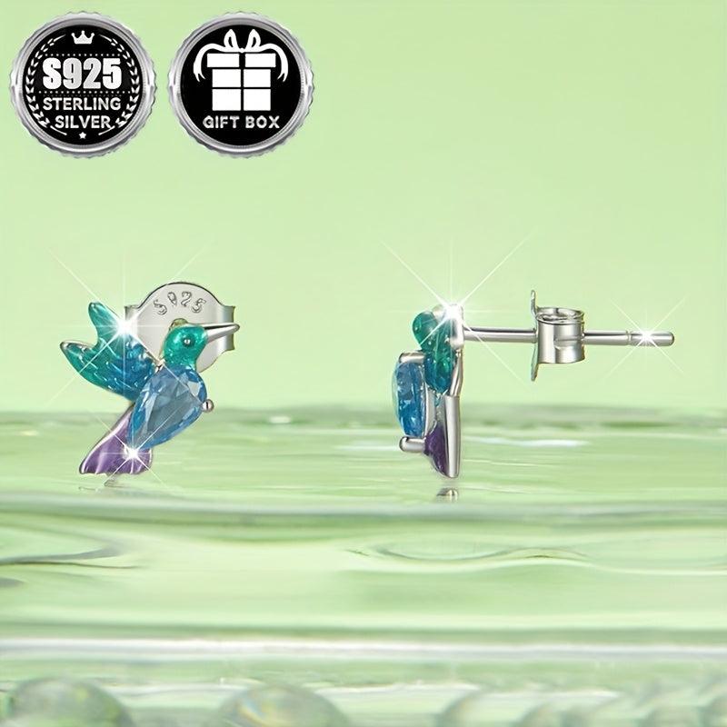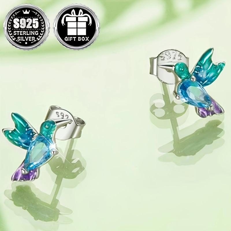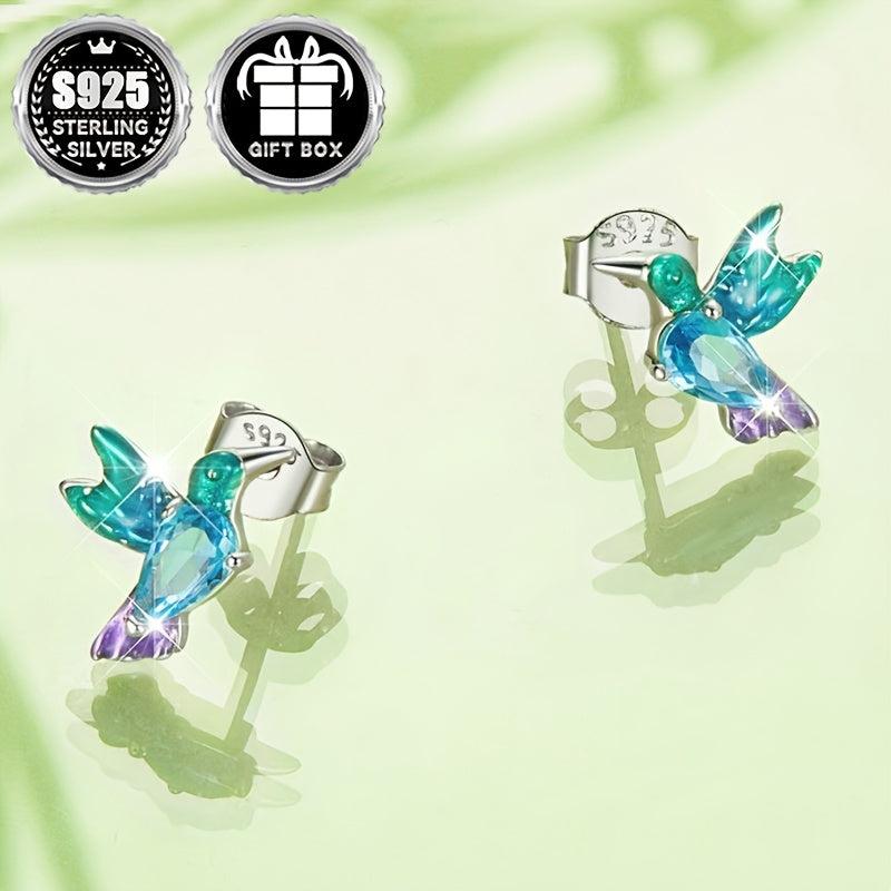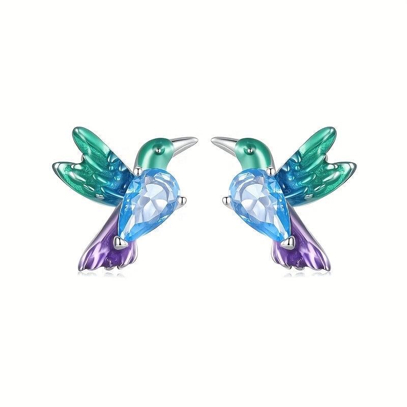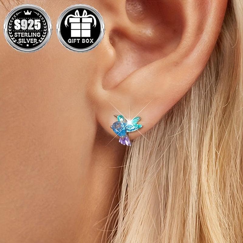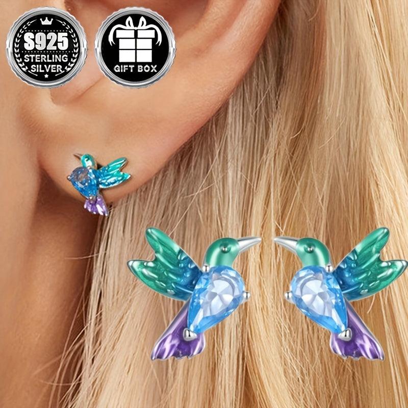 These elegant bird stud earrings crafted from 925 sterling silver feature synthetic zirconia for a touch of sparkle. Perfect for a minimalist look.
