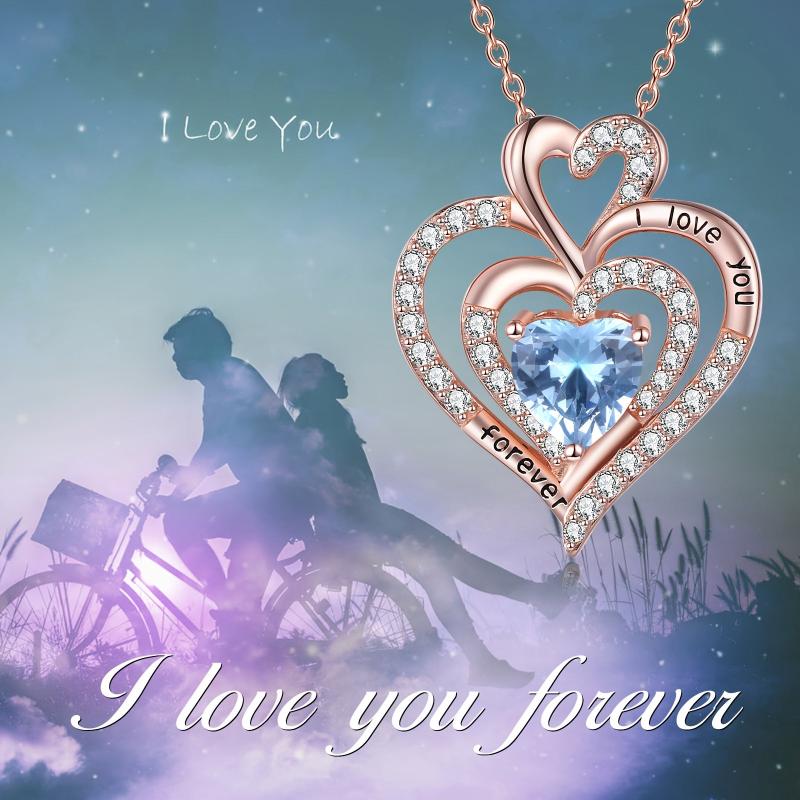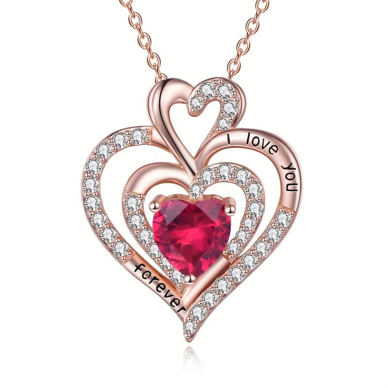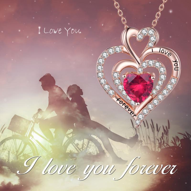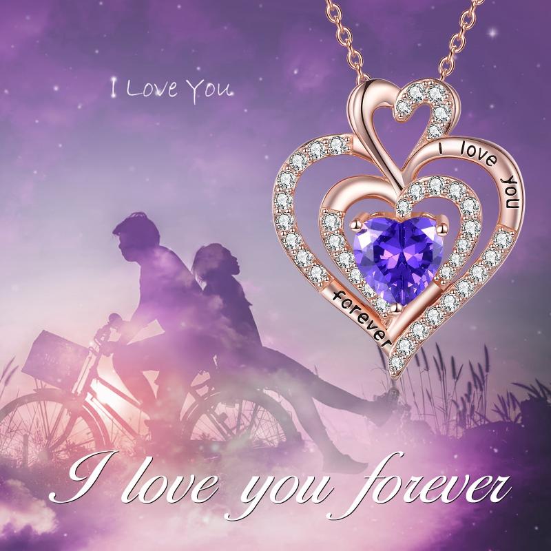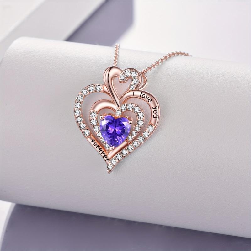 Show your love with this elegant double heart necklace featuring a birthstone, a perfect gift for your wife, girlfriend, or loved one.