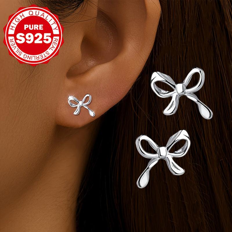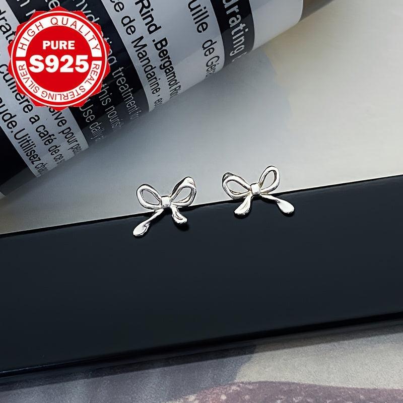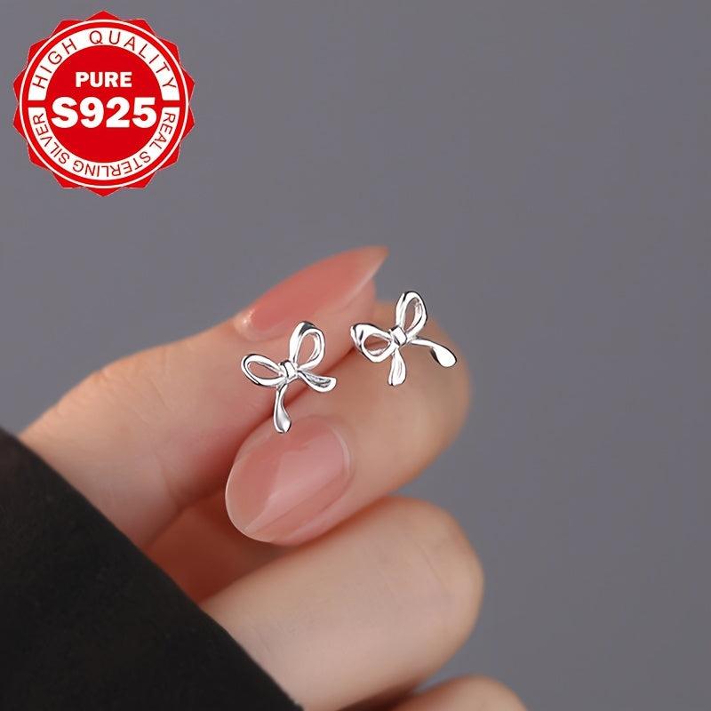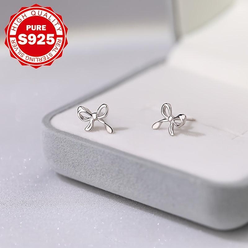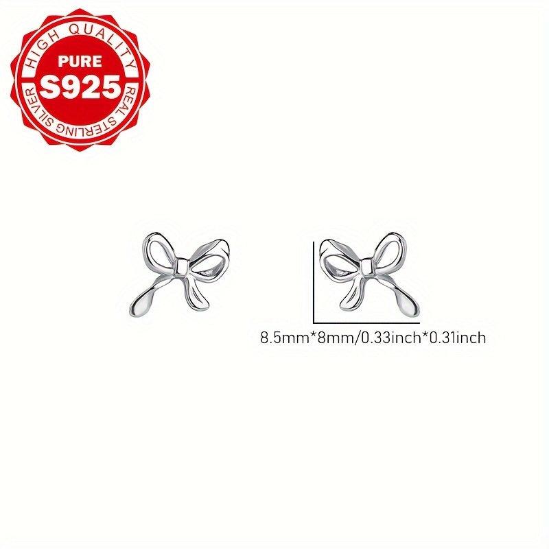 These charming bowknot stud earrings are made of 925 sterling silver, perfect for daily wear. They weigh 0.65g and are a great gift idea.